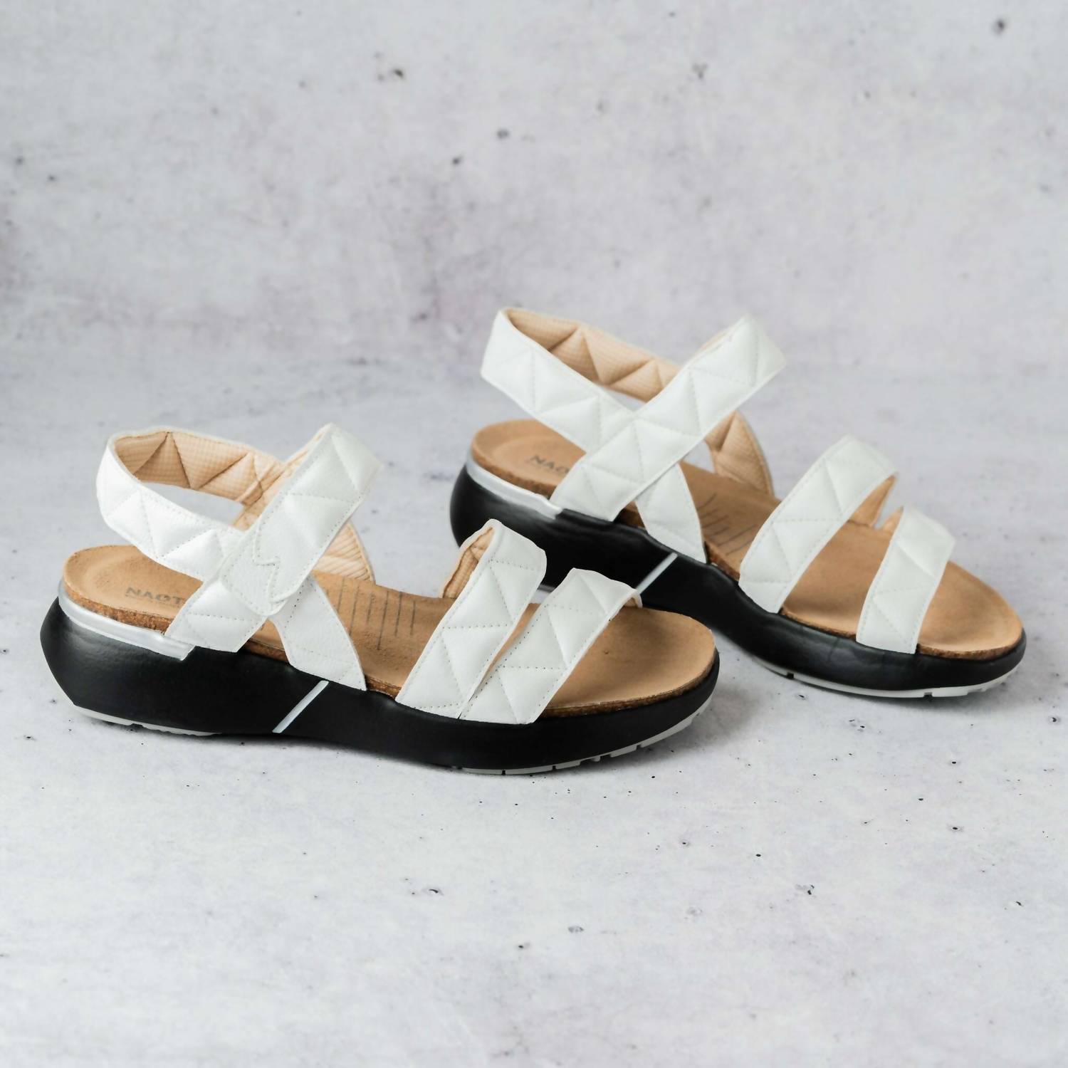 This sandal will take you from brunch to dinner and everything in between. Elevate your spring wardrobe with the Women's Naot Kayla Sport Sandals in Soft White Leather by Yaleet, ideal for your next travel adventure. These sandals boast an open toe design with a stylish platform heel measuring 1.5 inches, crafted from lightweight rubber for excellent arch support. Part of the Athena Collection, they feature an anatomic cork and latex footbed, beautifully lined with suede to perfectly mold to your feet. Enjoy a true-to-size fit, perfect for streetwear trends or Thanksgiving holiday outfits.