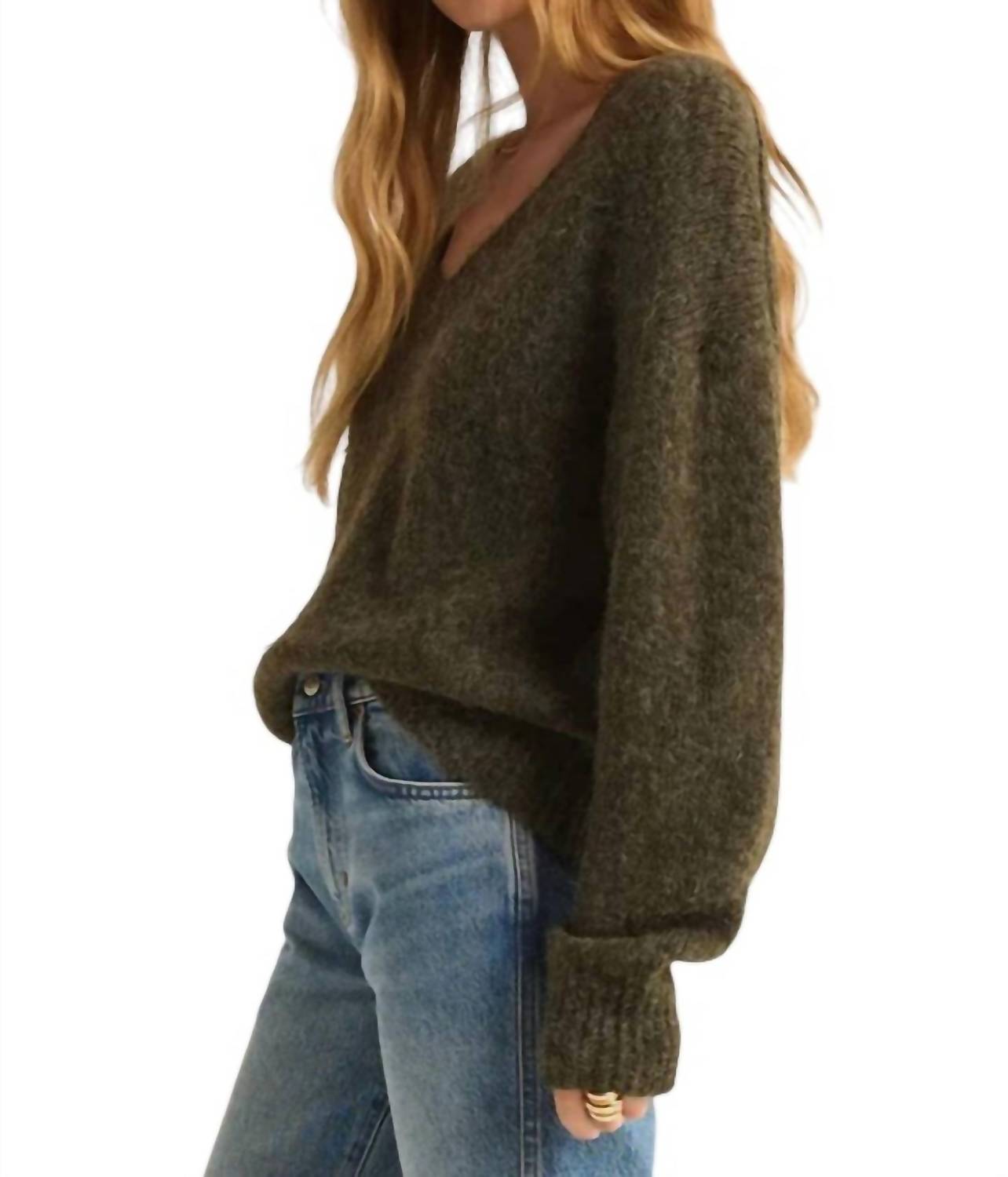 You'll be reaching for this comfy and classic v-neck sweater all season long. Wrap yourself in cozy elegance with the All I Want Sweater from Z Supply. Crafted with luxuriously soft Dove Mohair Yarns composed of 55% Acrylic, 30% Polyester, and 15% Nylon, it offers a textured look in a gorgeous Grape Leaf hue. This slouchy, midweight sweater features a V-neckline and long sleeves, perfect for effortless charm. Closure is a simple pull-on, designed for relaxed comfort.