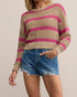 Introducing the Broadbeach Striped Sweater by Z Supply, a stylish piece in Biscuit designed to elevate your wardrobe. This crewneck sweater features long sleeves and a cropped mid-length, perfect for a relaxed yet chic look. Made from 100% cotton, it boasts a playful stripe pattern ideal for layering during spring. Closure: Pull on. Care: Machine wash, lay flat to dry. The model is wearing a size XS, with a garment length of 20 1/2" and a 41" bust.