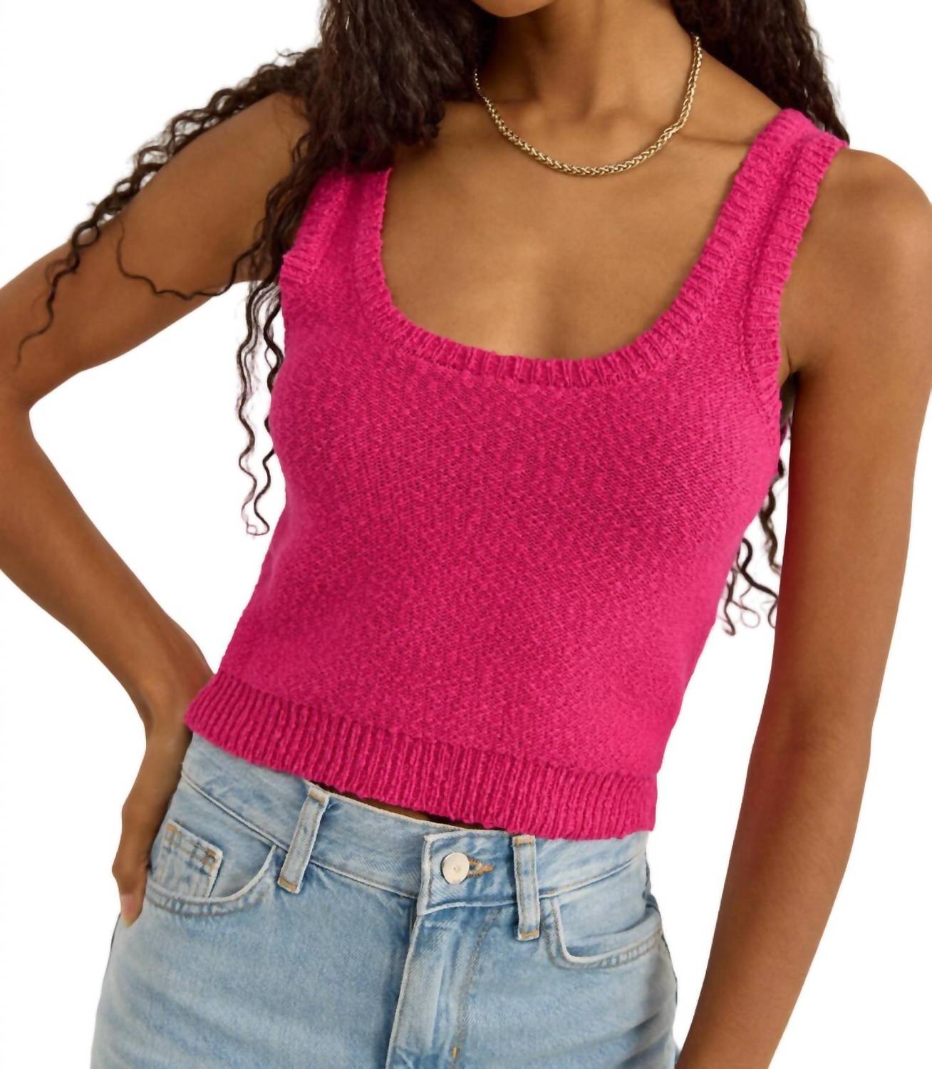 Fit, fabric and functionality. This tank top checks all the boxes. Elevate your wardrobe with the Catalina Top by Z Supply, a perfect blend of style and comfort. This women's sleeveless tank features a scoop neckline and is expertly crafted from a 55% Cotton and 45% Acrylic blend, offering a textured appearance with contrast rib stitch detail. With a garment length of 17.25 inches, this pull-on tank comes in a vibrant Very Berry hue, ideal for infusing color into your ensemble. Embrace effortless chic with this timeless piece from Z Supply.