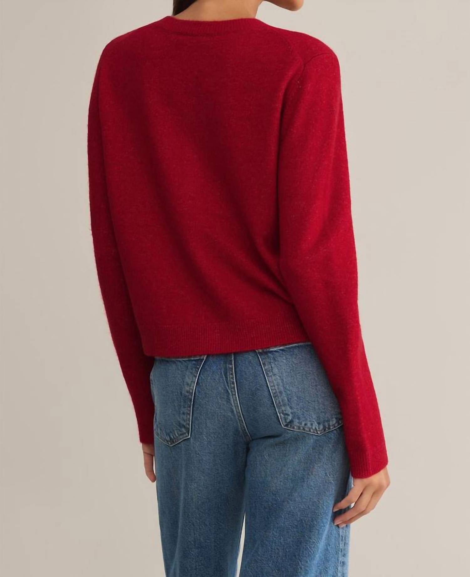 This cardigan will be a sweater-rotation favorite. Introducing the Outlook Haute Red Cardigan by Z Supply, a stylish addition to any wardrobe with its classic crew neck and button front. This long-sleeve cardigan offers a regular fit and is crafted from Gia Yarns, comprising 75% Polyester, 22% Acrylic, and 3% Spandex, delivering both comfort and texture. Closure: Button closure. Care: Hand wash cold separately, reshape and lay flat to dry or dry clean.