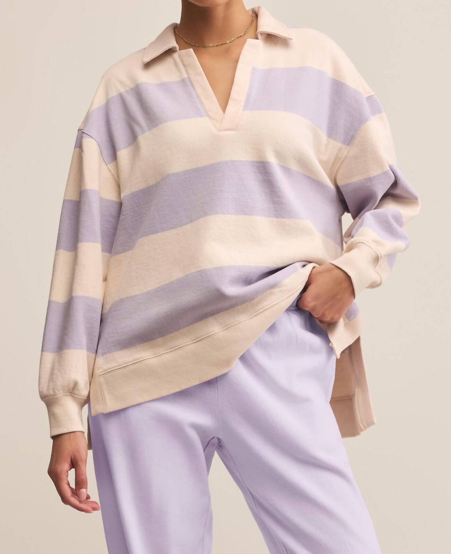 A timeless v-neck sweater that works season after season. Enhance your wardrobe with the Rugby Henley Top by Z Supply, an ideal choice for casual, layered looks. This relaxed pullover features long sleeves, drop shoulders, and a stylish V-neck collar, all in a vibrant multi-stripe pattern. Crafted from 100% cotton brushed fleece, it delivers a soft, lived-in feel. Pull on. Machine wash cold, gentle cycle, hang to dry.