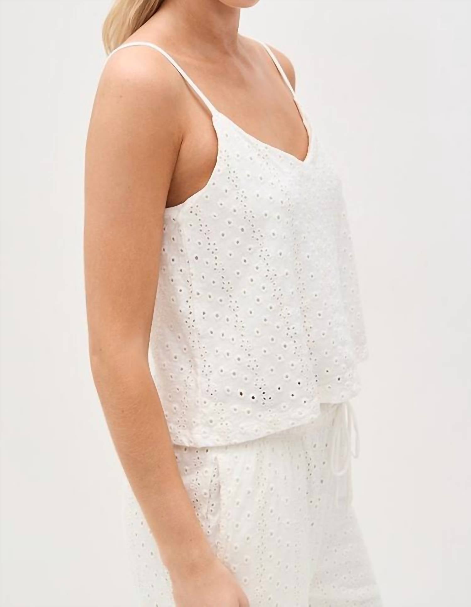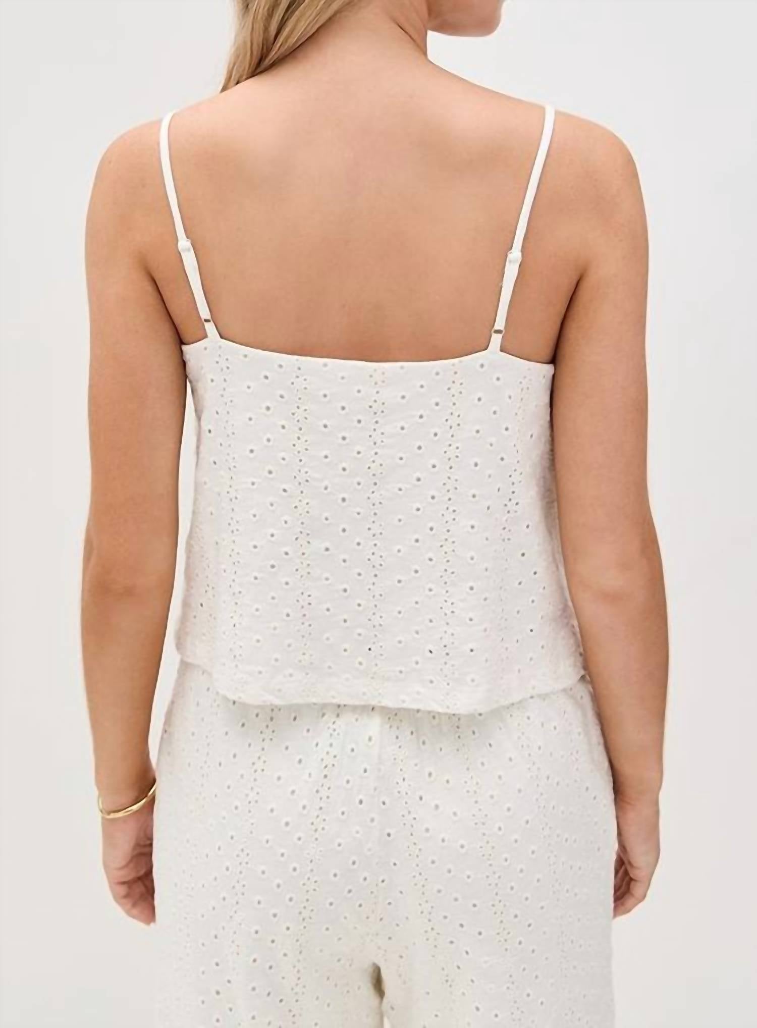 This classic tank top is perfect for layering and cute enough to wear on its own. The Sylvie Eyelet Tank by Z Supply is a minimalist piece perfect for holiday parties, crafted with a patterned design in classic white. Featuring spaghetti straps and a V-neck, this tank is made from 100% cotton with a matching cotton lining for comfort. The pull-on closure makes it a breeze to wear, while maintaining effortless style. Care is a cinch with hand wash instructions, ideal for those relaxed spring gatherings.