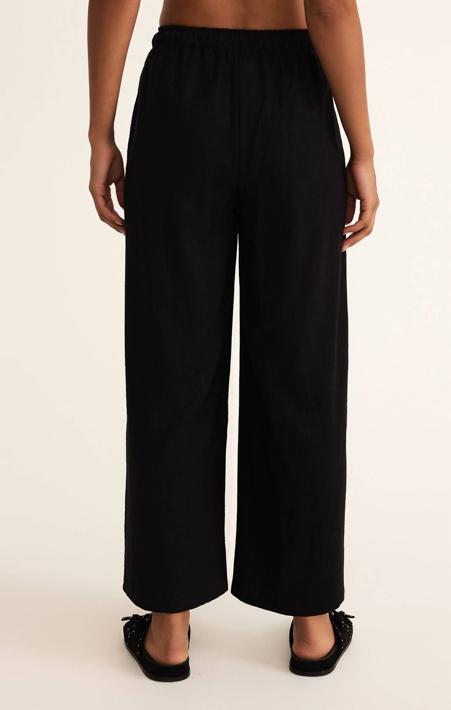 Experience effortless style with the Women's Easton Linen Pant by Z Supply, expertly crafted for easy elegance. Featuring an ankle-length design and a wide-leg style, these high-rise pants combine breathable 55% Linen and 45% Rayon. The elastic waist with tie closure ensures a perfect fit, while the side seam pockets add functionality. Fully lined for comfort, these pants offer versatile wearability in classic black or white.