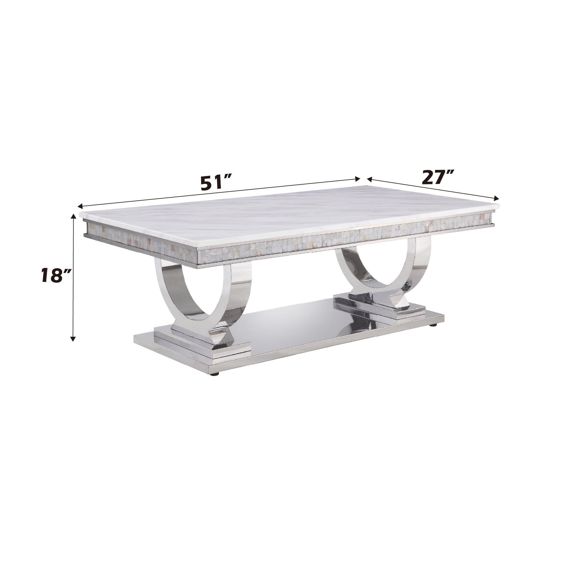 Zander - Printed Faux Marble Top & Mirrored Table - Marble