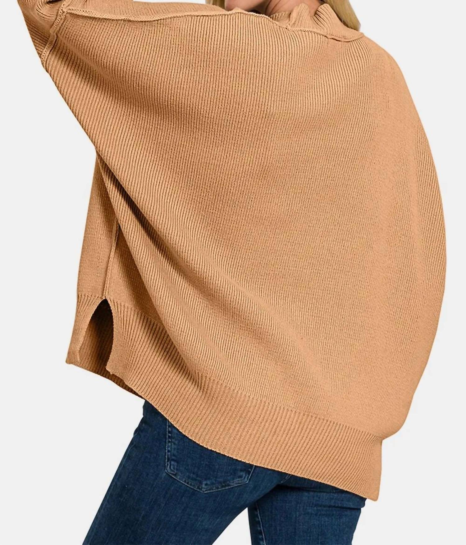 Experience the perfect blend of comfort and style with this trendy crew neck sweater, designed to effortlessly elevate your wardrobe. Pair it with your favorite denim and loafers for the perfect look. The ZENANA Side Slit Oversize Sweater in Dk Brush combines a trendy oversized fit with cozy knit comfort. This long sleeve crewneck sweater is crafted from a cotton blend with 56% cotton, 38% acrylic, and 6% nylon, offering slight stretch and a soft feel. Designed with ribbed detailing, exposed seams, and stylish side slits, this piece is both fashionable and functional for the fall season. Care is simple with machine wash cold and low tumble drying; available in S/M fitting a bust of 34-38 inches and waist 26-31 inches, and L/XL fitting a bust of 39-42 inches and waist 32-35 inches. Imported.