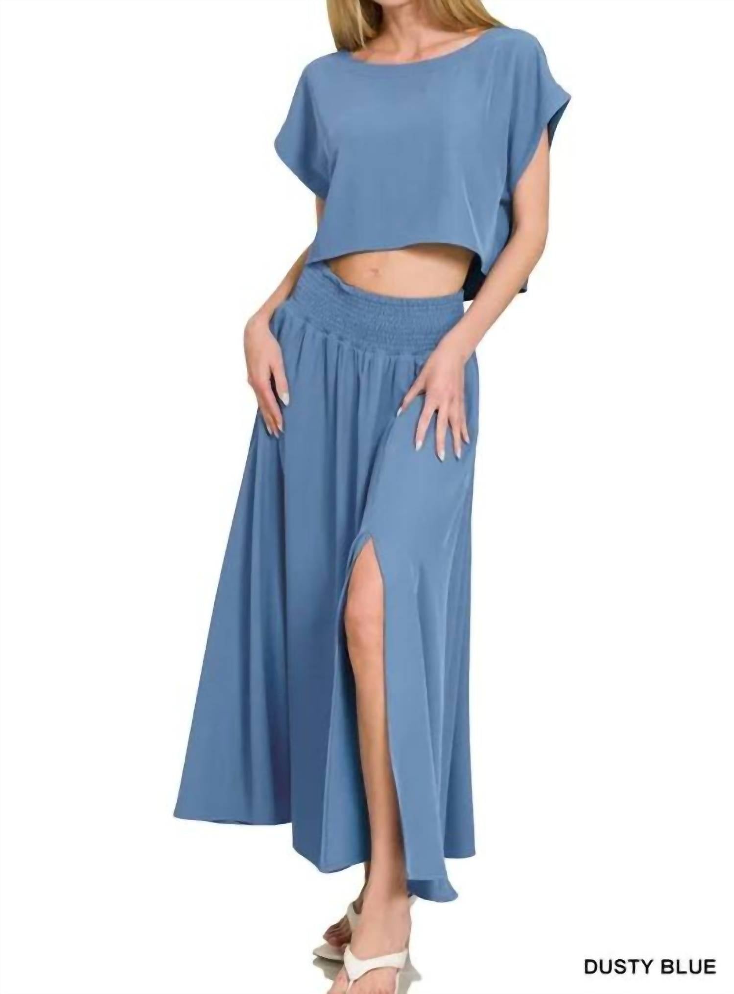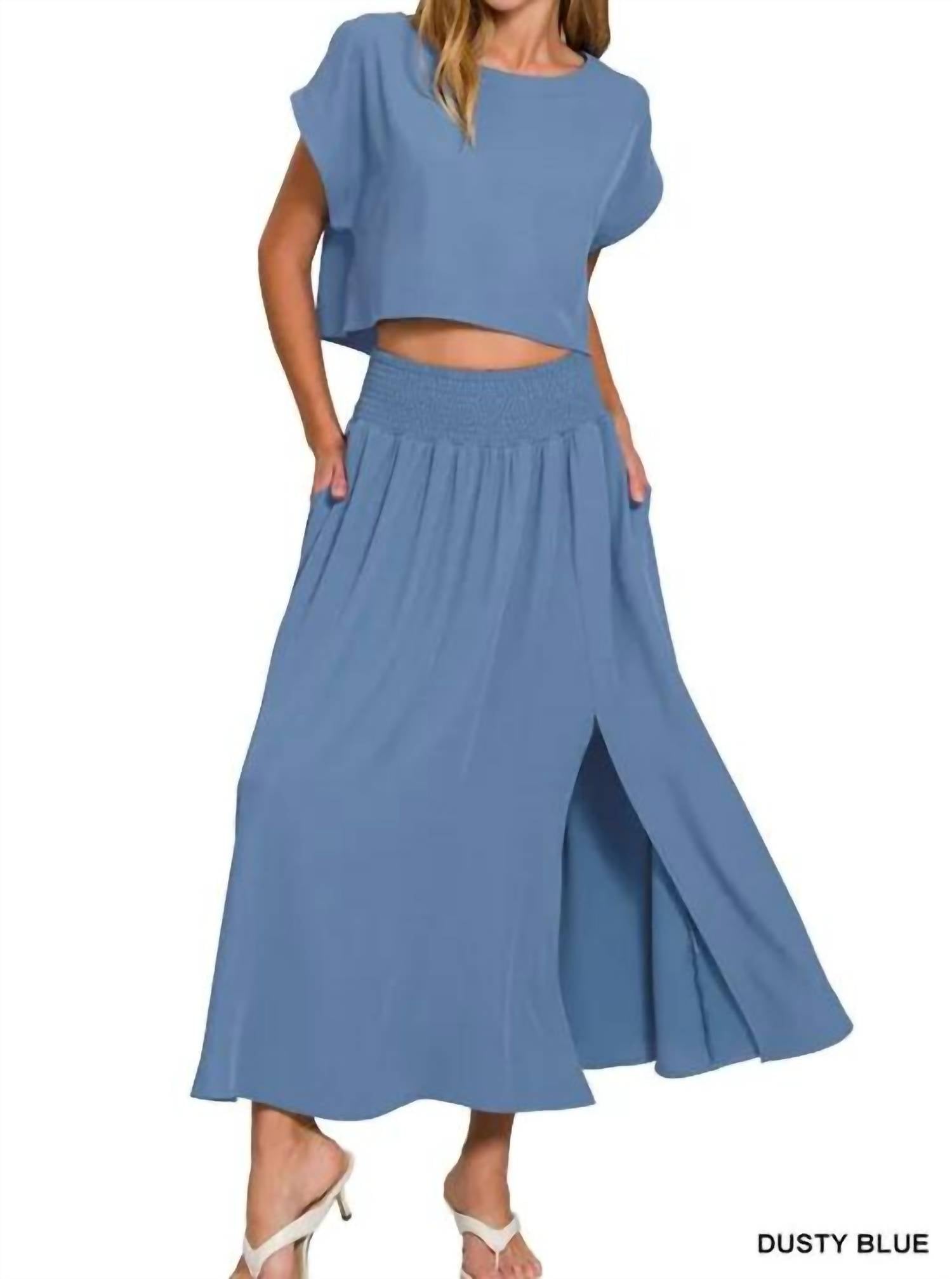 Zenana - Woven Crinkle Gauze Crop Tee And Skirt Set