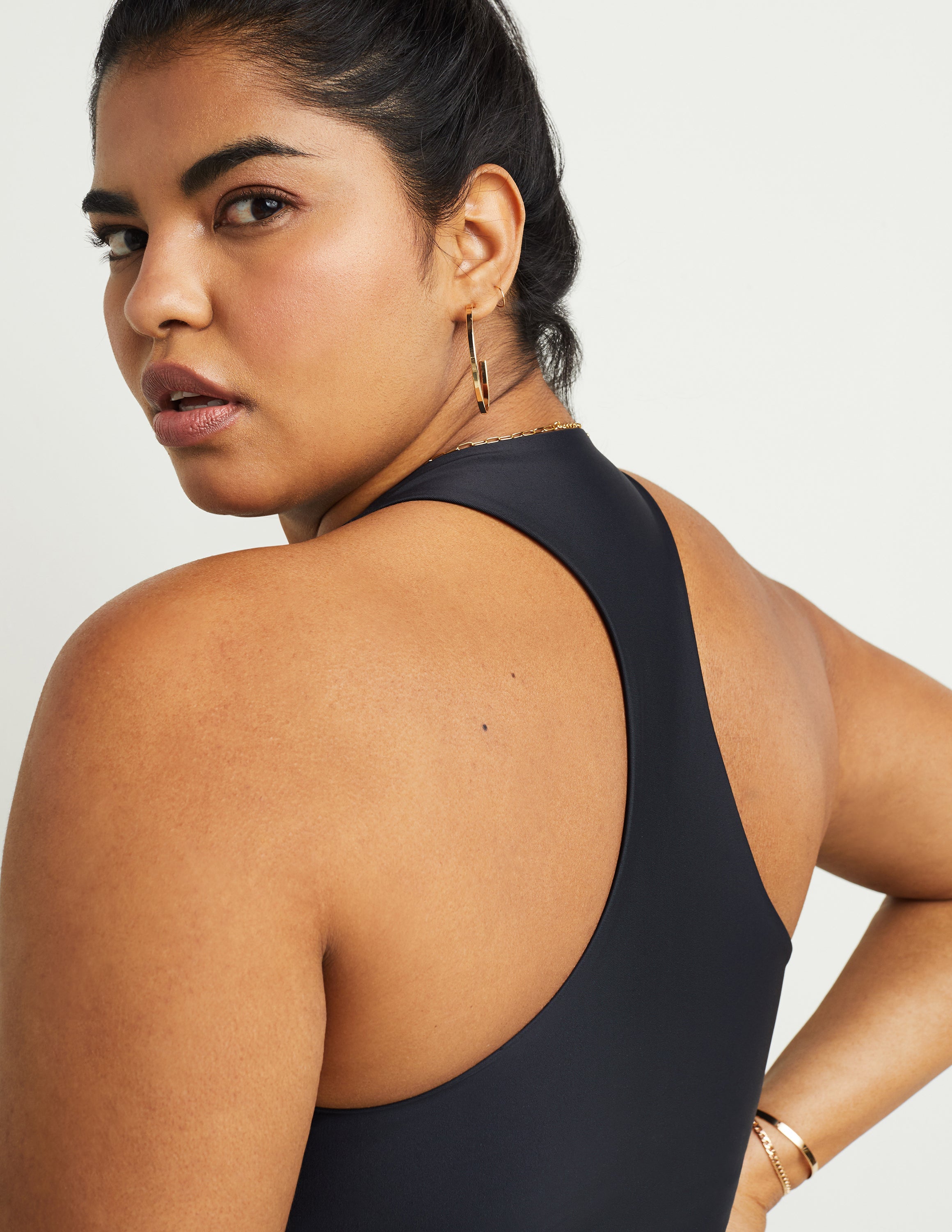 Ready. Set. All-star. Born to perform, this top’s longer crop provides more coverage than a sports bra, while its lined interior bra, techno-fabric, and low-cut Racerback Top shape offer support and freedom of movement.