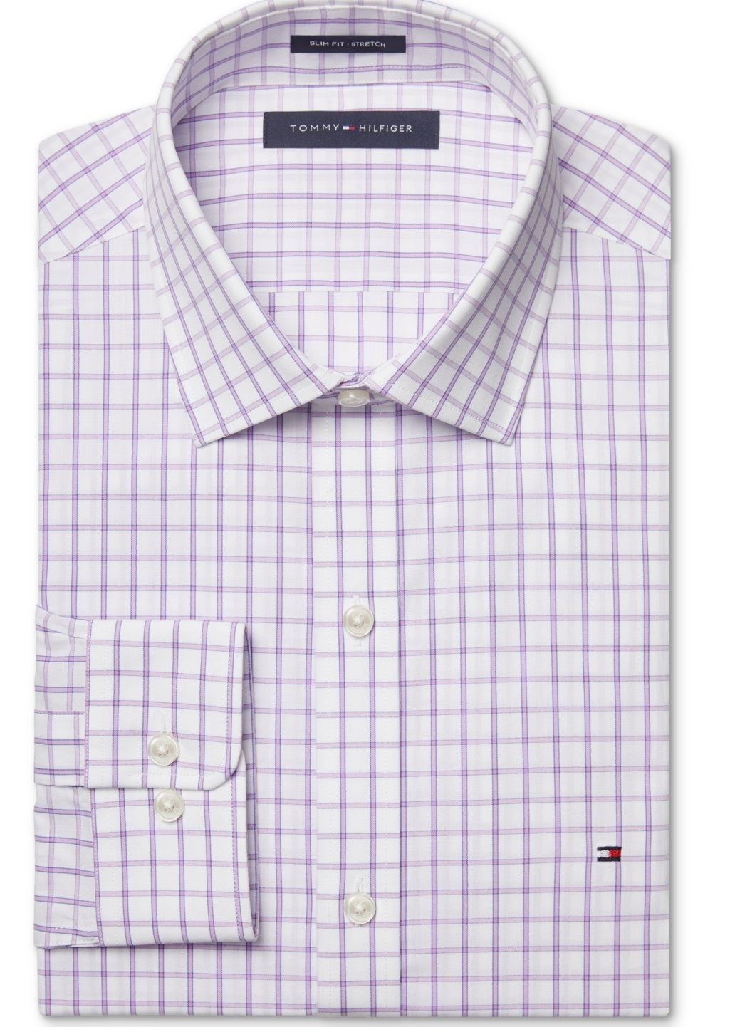 Cut for slimmer sleeves and a sleek look that flatters the body| Tommy Hilfiger's slim-fit dress shirt expertly straddles the line between all-business and business-casual and works in an endless number of settings