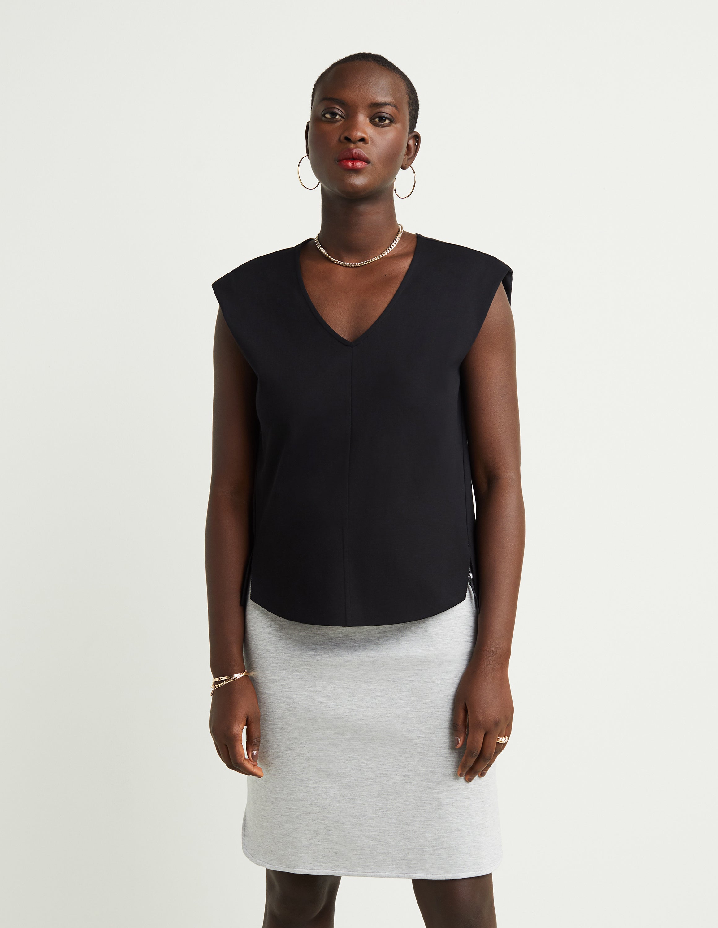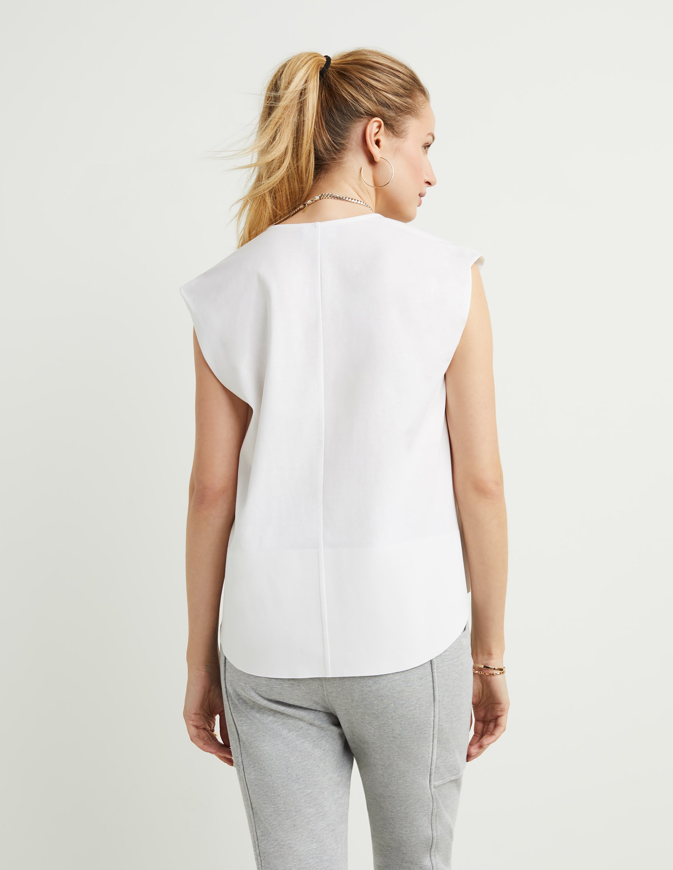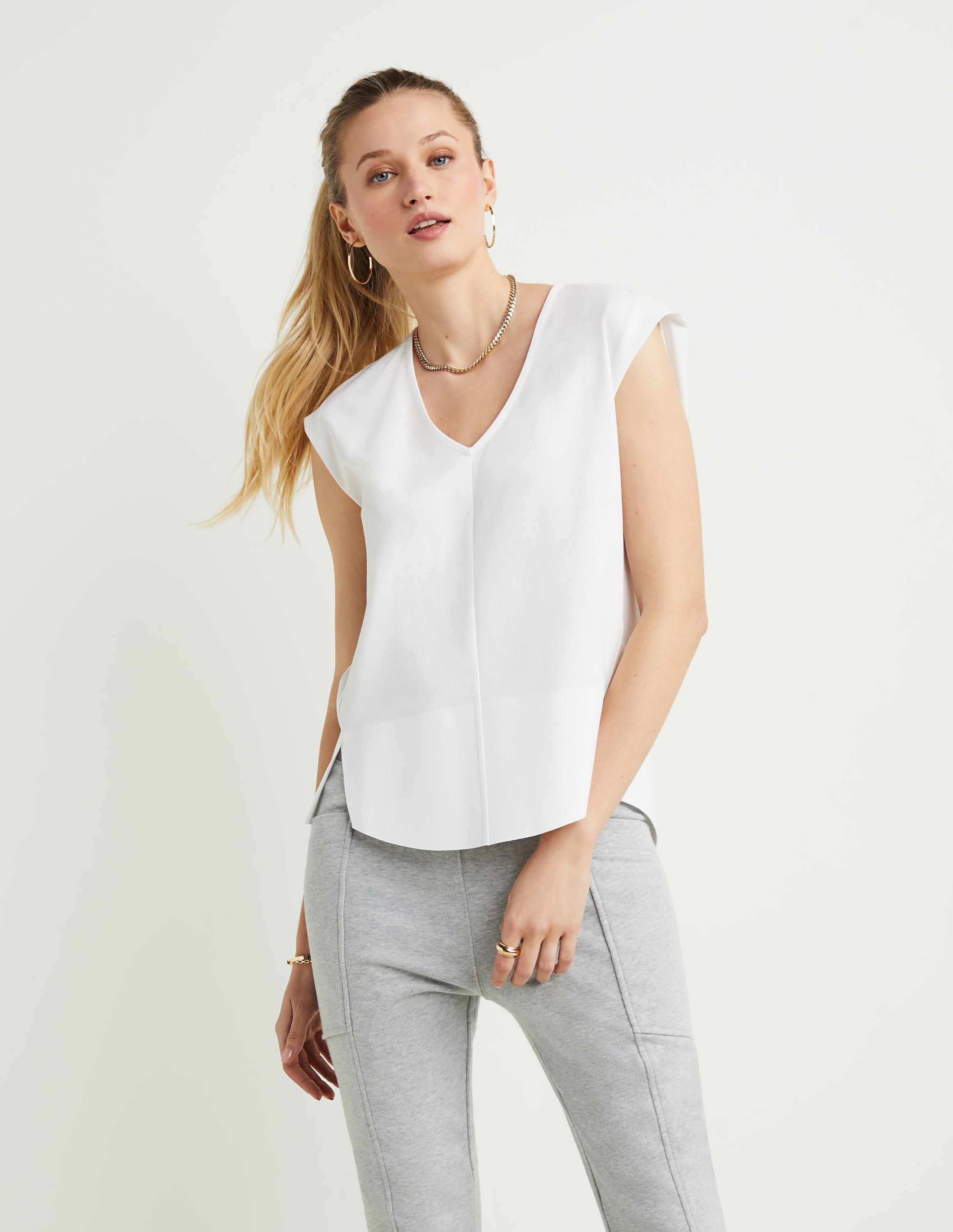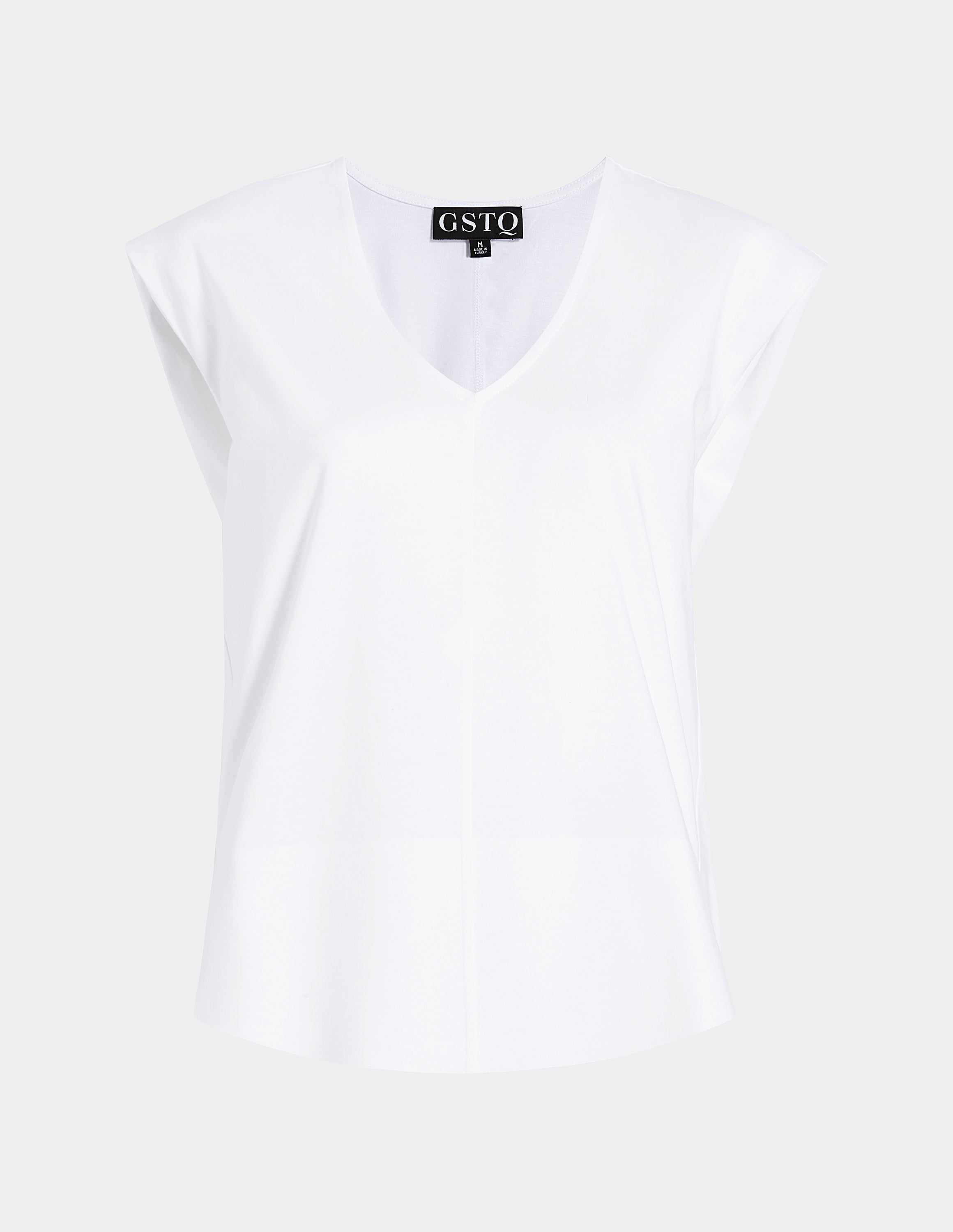 Treat every day like the big day. Our top’s strength lies in the details of this deceptively simple staple. The organic mercerized cotton not only gives it a luminous finish, but its silky texture is stronger than conventional cotton. Slightly broader, fluid cap sleeves showcase arms in the best possible way, while the cocoon shape, high-low split seam, and deep V-neck all contribute ultra-chic finishing touches.