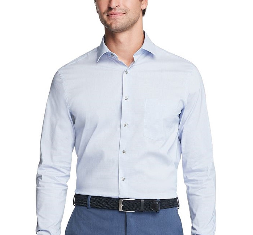 Van Heusen Men's Classic Regular Fit Stain Shield Performance Stretch Check Dress Shirt Blue Size 37X38