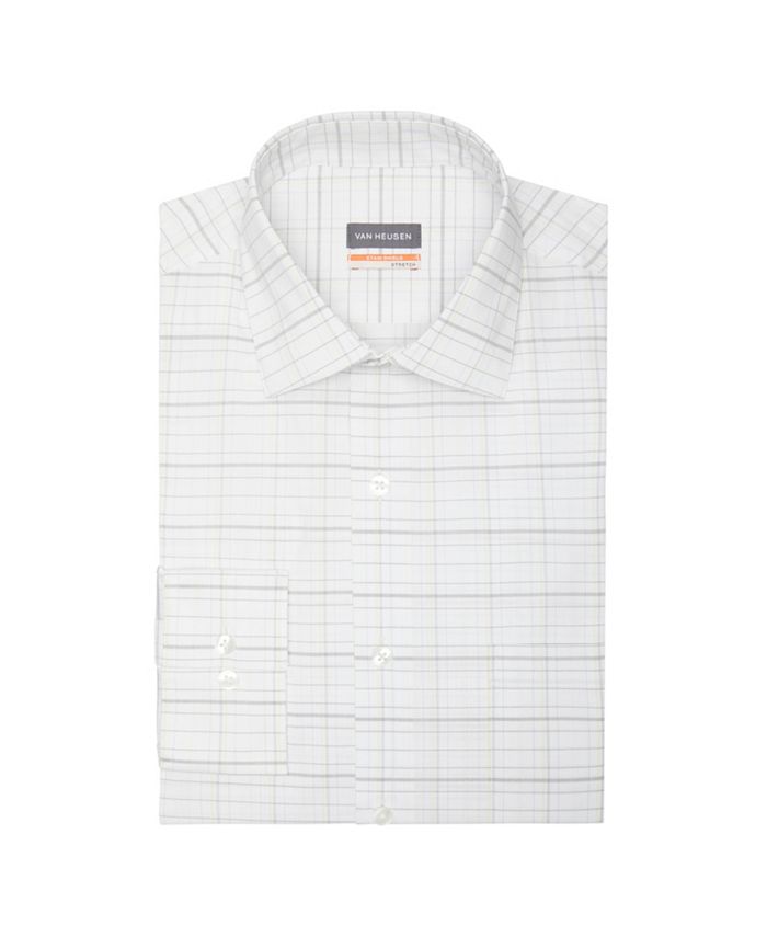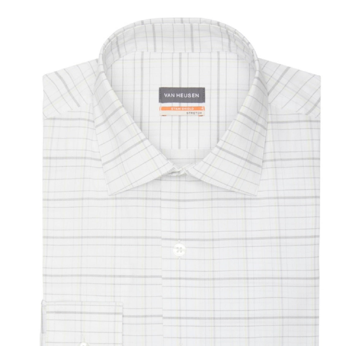Block tough stains before they start with a Van Heusen stain shield dress shirt. It’s designed for extreme stain defense even against tough water and oil based spills| when accidents happen| just rinse with running water. The soft| quick drying fabric also has added stretch for all day comfort.| Stretch fabric moves with you for extra comfort| Fabric is specially washed to provide a softer feel and greater comfort| Fabric delivers enhanced wrinkle resistance and easy care at home
