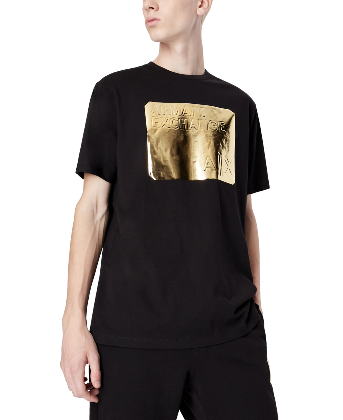A|X Armani Exchange Men's Metallic Embossed Logo Graphic T-Shirt Black Size Large