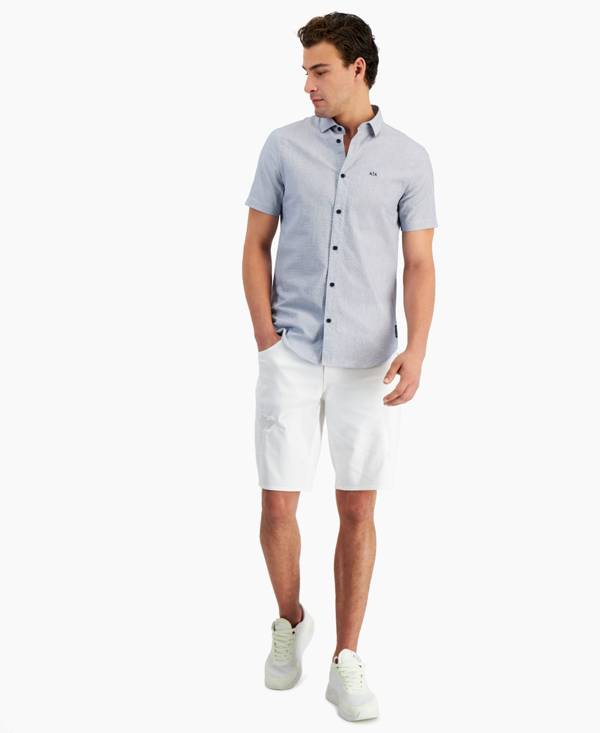 A|X Armani Exchange Men's Stretch Geo Print Button Down Shirt Black Size Medium