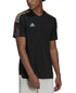 Fresh color re-energizes the three iconic stripes| bringing a fresh tlook to this made-to-move Tiro jersey from adidaas.| Regular fit| V-neck| Logo at right; drop hem| AEROREADY wicking technology helps evaporate moisture; mesh at sides| Polyester (100% recycled)