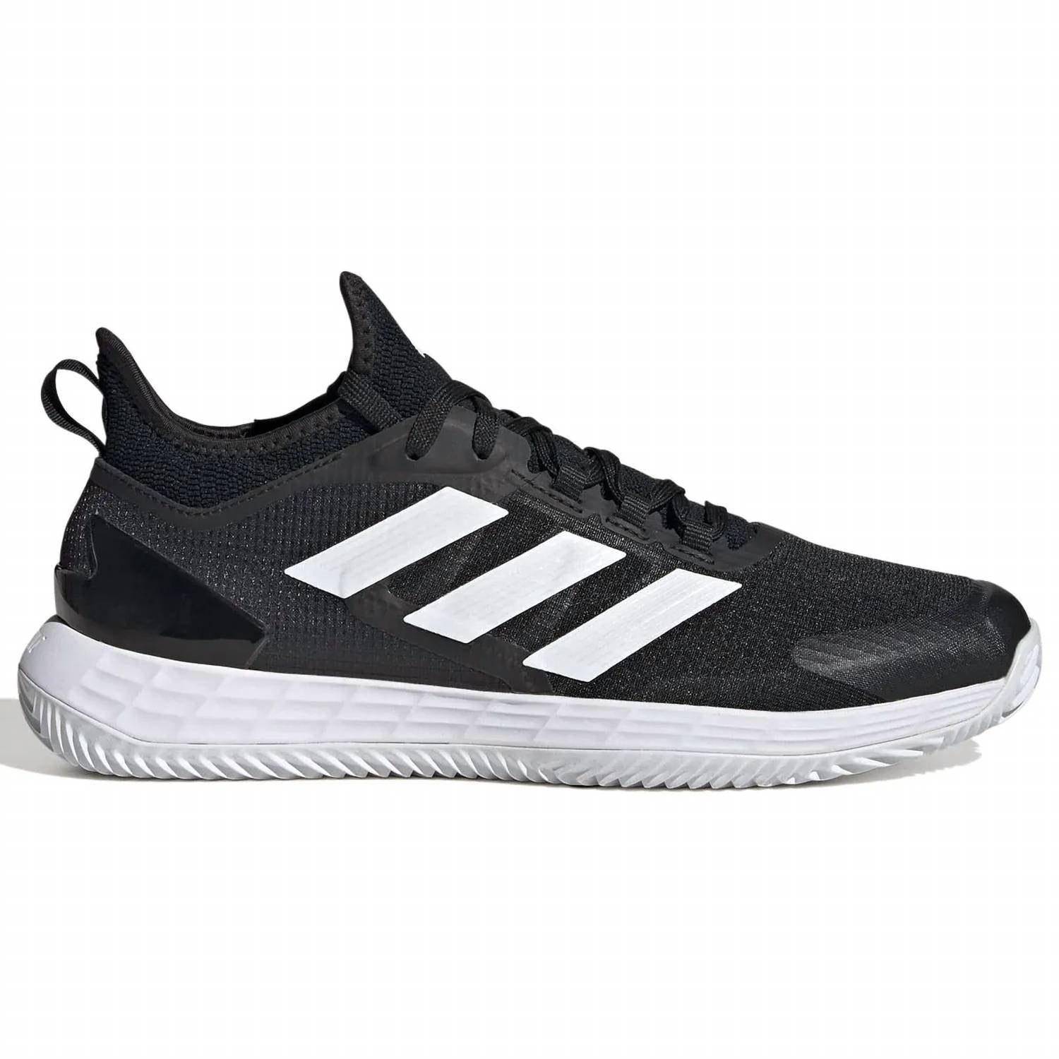 Introducing the Men's Ubersonic 4.1 Clay Tennis Shoes by adidas, designed to enhance your performance on the court. These sneakers boast a woven mesh upper for a sock-like fit and are crafted with Lightstrike cushioning for responsive comfort. Equipped with a lace closure, they feature an Adiwear outsole and an Adituff abrasion area, both incorporating 60% recycled BOOST materials to ensure durability. Perfectly finished in Core Black, Cloud White, and Grey Four, they promise uncompromising grip and support for extreme lateral movements.