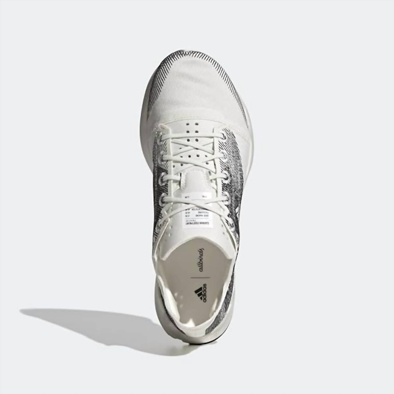 Stylish, comfortable and supportive. These athletic sneakers check all of the boxes. Step into comfort and style with the adidas Adizero X ALLBIRDS 2.94 KG CO2E Women's Shoes, designed for the athleisure trend. Featuring Ethylene Vinyl Acetate for both the sole and outer material, these shoes are perfect for neutral pronation, making them ideal for fitness and workout occasions. The flat heel and round toe design ensure lasting comfort and a secure lace-up closure completes the look. Step into sustainability with these chic white athletic shoes.