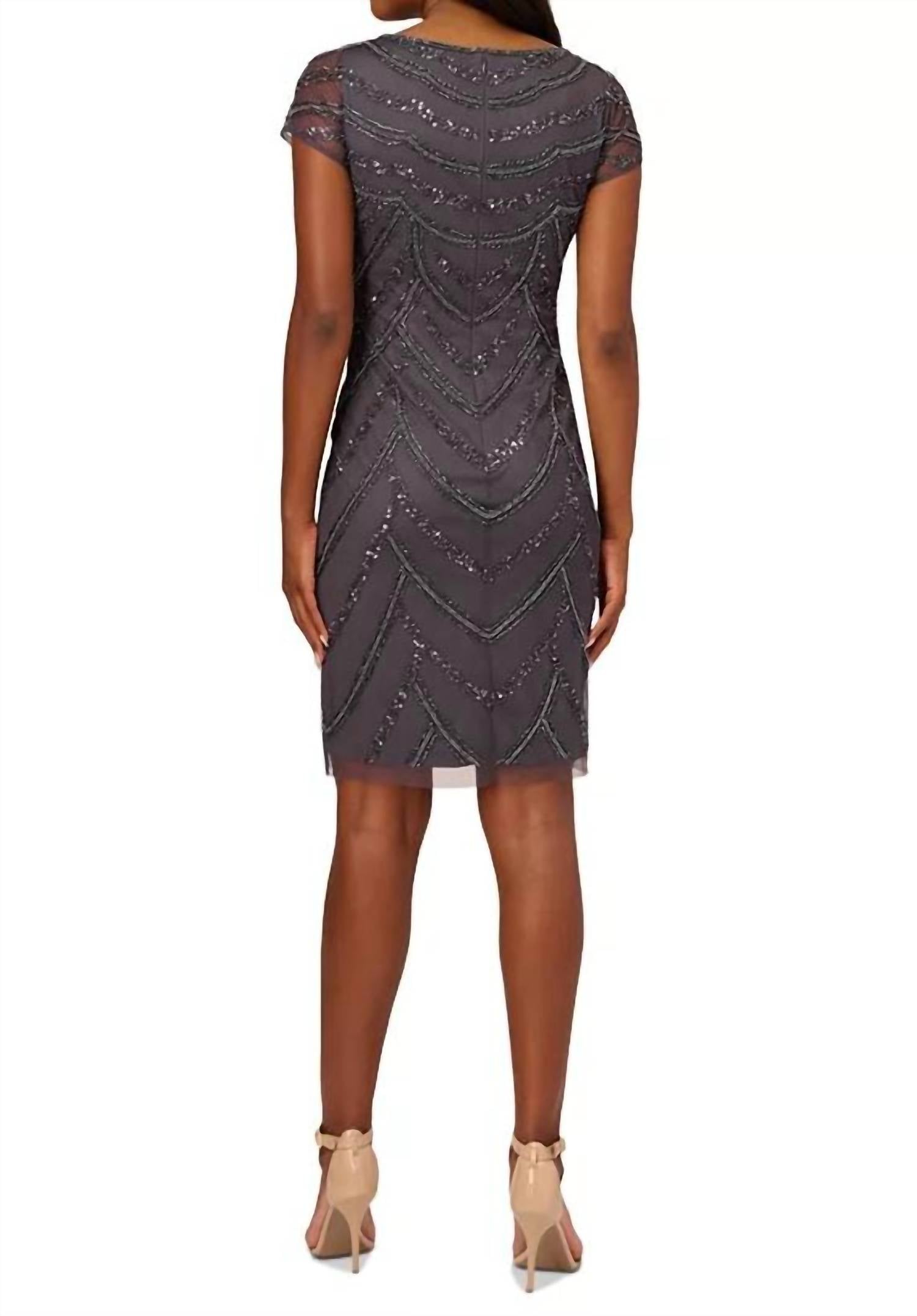 Adrianna Papell - Cap Sleeve Boat Neck Beaded Dress