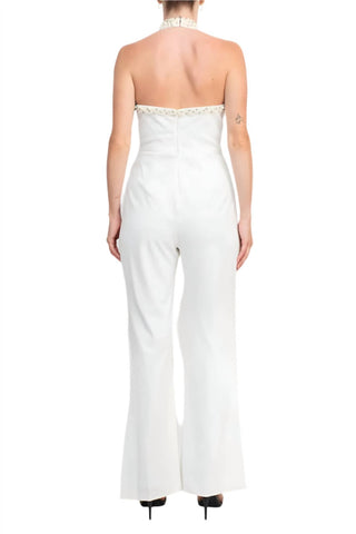 Adrianna Papell - Embellished Halter Neck Knit Crepe Jumpsuit