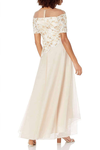 Adrianna Papell - Bateau Neck Short Sleeves Long Gown