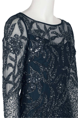 Adrianna Papell - Boat Neck Long Sleeve Mesh Dress
