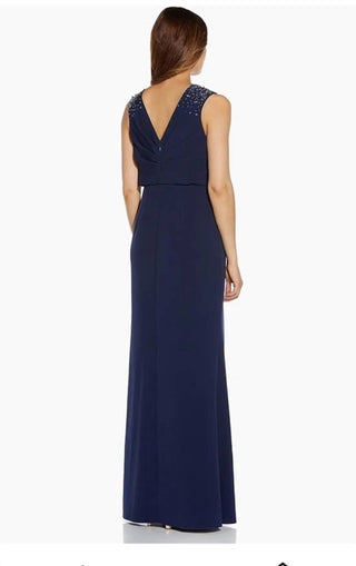 Adrianna Papell - Beaded V-neck Sleeveless Font Slit Gown