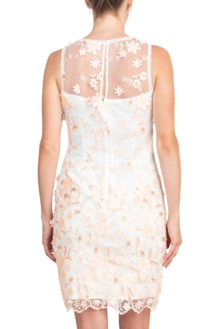 Adrianna Papell - Floral Embroidered Keyhole Mesh Dress
