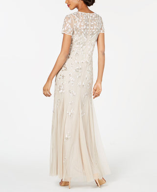 Adrianna Papell Women's Beaded Short Sleeve Gown Brown Size 10