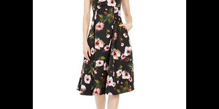 Adrianna Papell Women's Floral a Line Dress Black Size 12