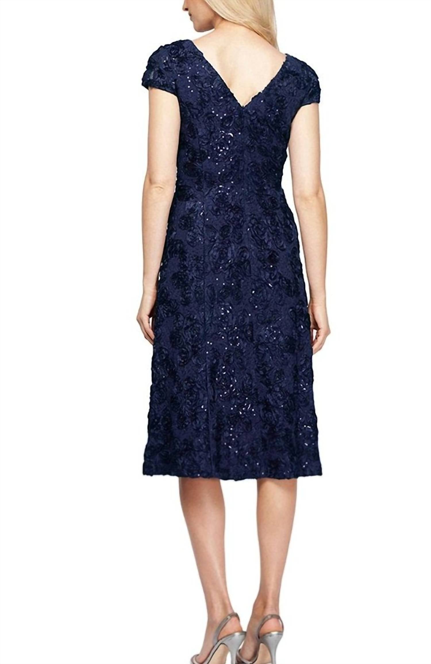Alex Evenings - Cap Sleeve Rosette Lace Dress
