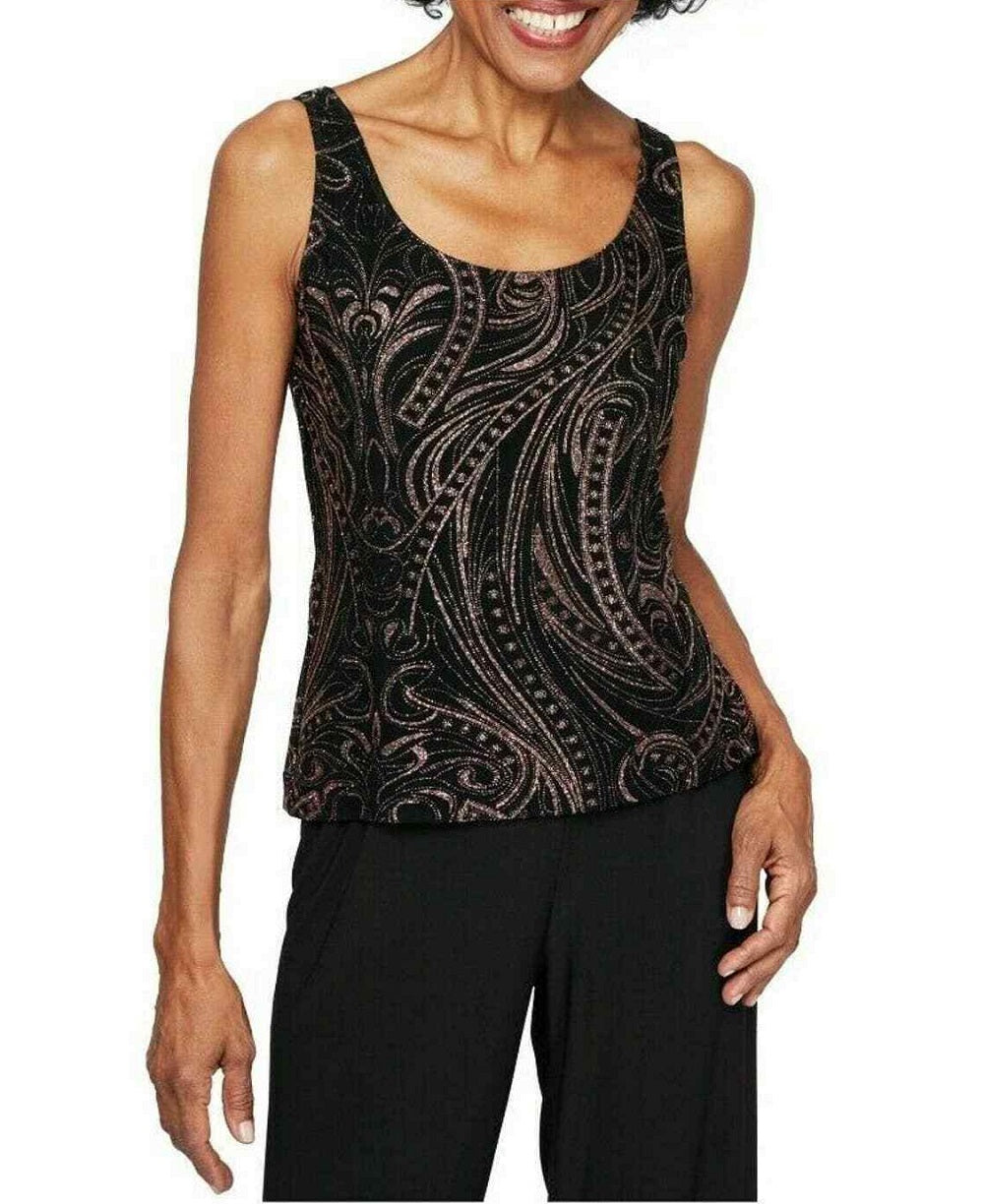 Alex Evenings Women's Embellished 3/4 Sleeve Scoop Neck Evening Top Black Size Petite X-Large