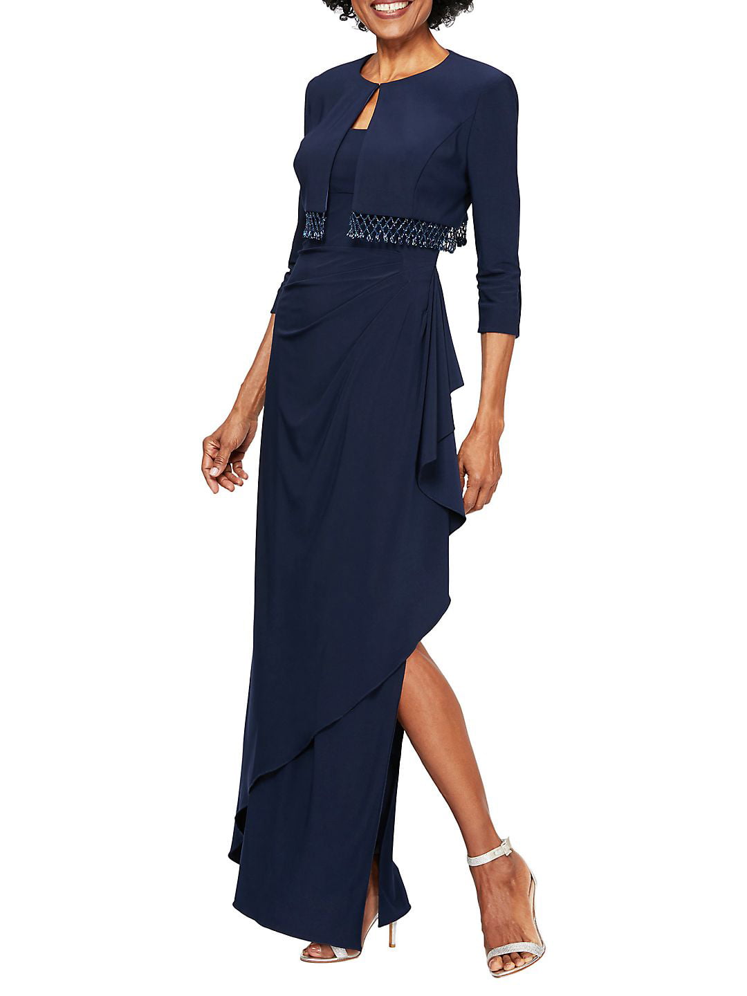Alex Evenings Women's Fringed Rhinestone 3/4 Sleeve Open Cardigan Formal Top Blue Size 10