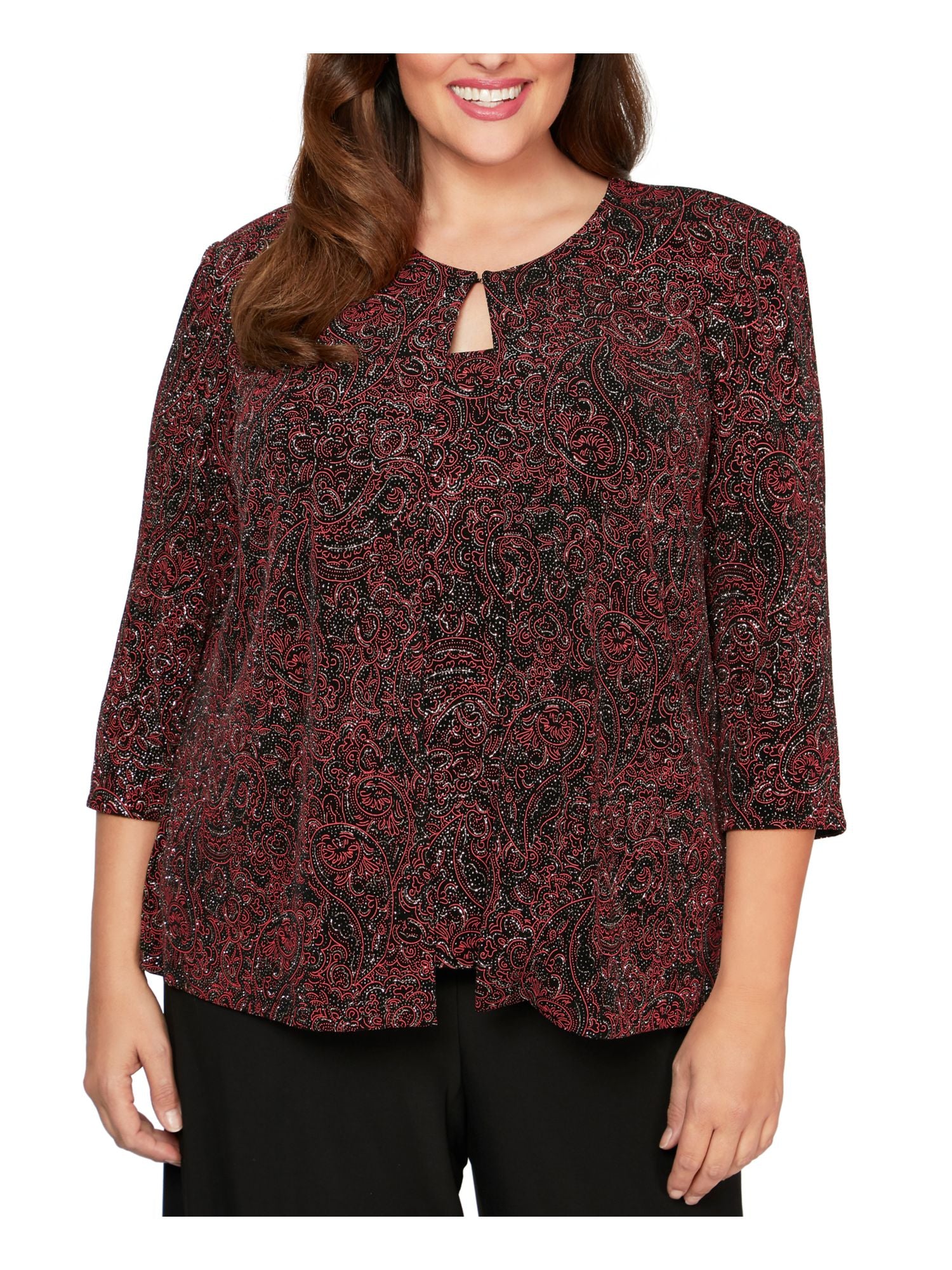 Alex Evenings Women's Glitter Printed Wear to Work Jacket Red Size 3X