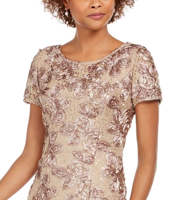 Alex Evenings Women's Rosette A Line Gown Brown Size 8
