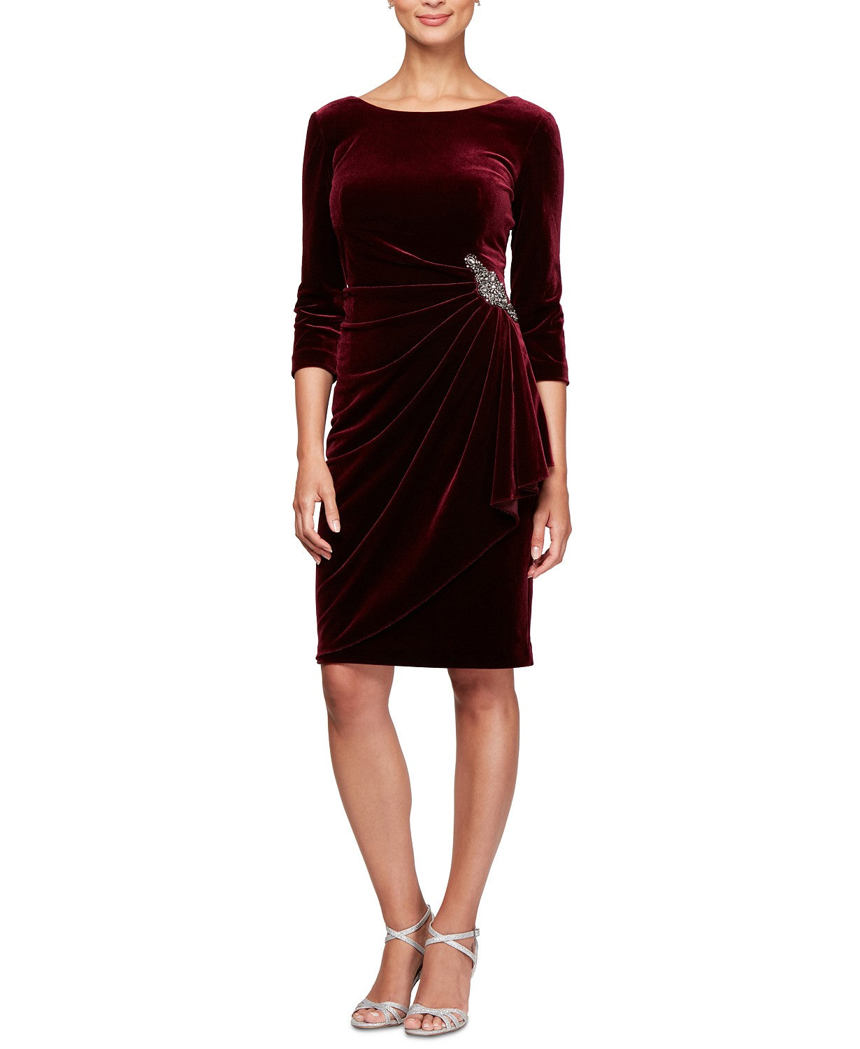 Alex Evenings Women's Ruched-Side Velvet Dress Red Size 16