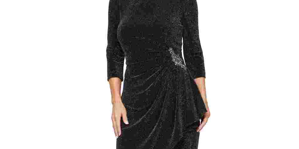 Approx. 30 long from center back neck to hem. Length is based on size 8 and varies 1/4 between sizes|Crewneck; Sheath silhouette|Hidden zipper with hook-and-eye closure|3/4-sleeves|IMPORTANT NOTE; This item arrives with a return tag attached and instructions for removal. Once the tag is removed from the dress; this item cannot be returned.