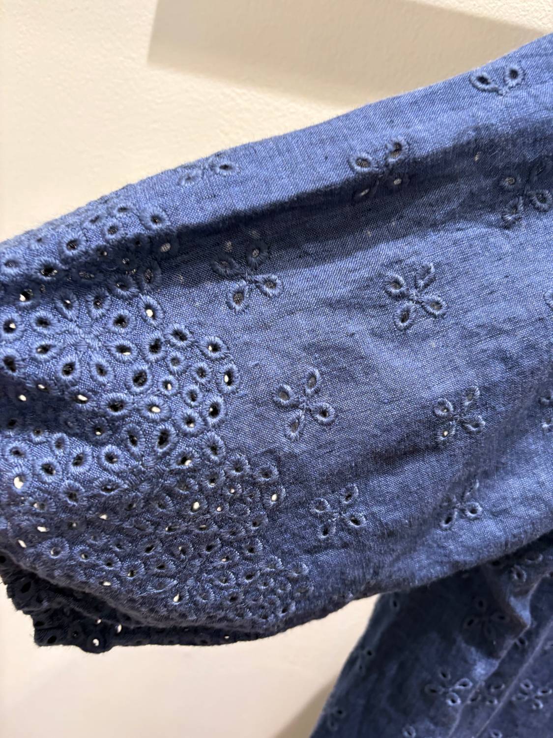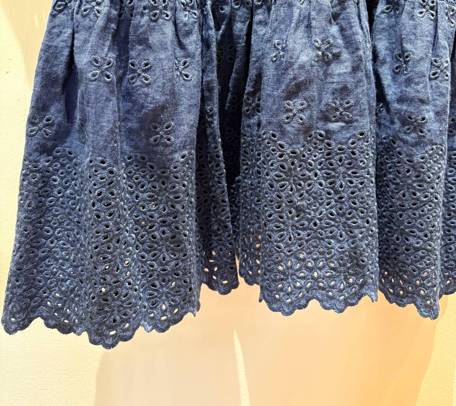 Introducing the Maybelin Dress by 0039 Italy, a stunning summer piece crafted from linen in a charming marine blue hue. This midi-length dress features a feminine tunic crewneck and puff sleeves, complemented by decorative perforated lace and a fashionable plunging ruffled skirt. Closure: Pull-on style ensures ease of wear, while practical pockets add functionality. Care: Machine wash and tumble dry for effortless maintenance, embodying minimalist boho charm.