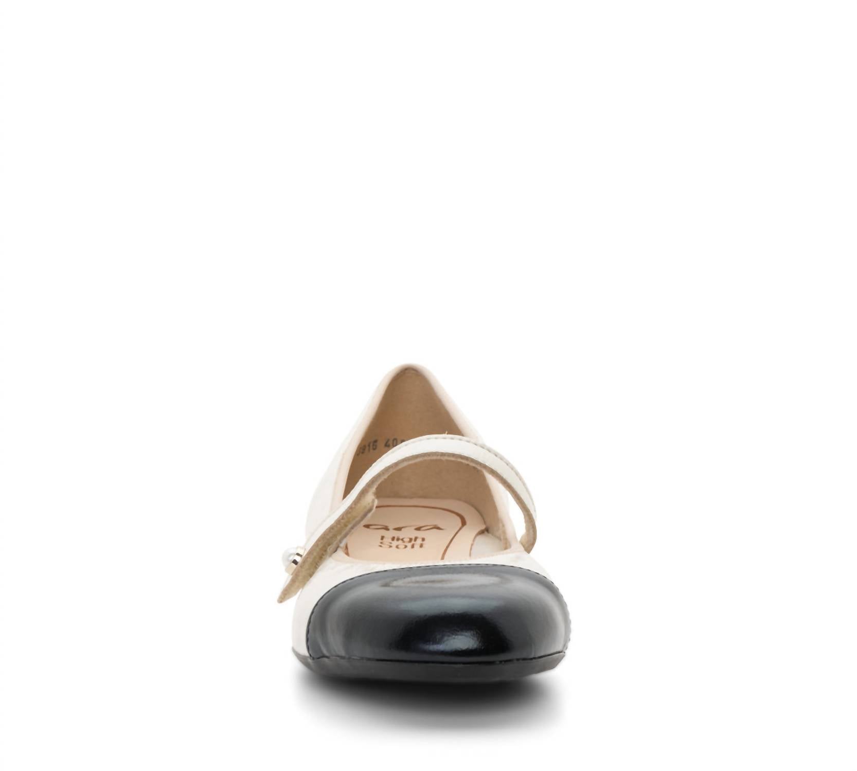 Step into elegance with the Women's Sapphire Ballet Flat by Ara, featuring a chic navy patent color block atop the round toe. These minimalist flats boast a cushioned footbed with arch support for comfort and a sleek flat heel measuring 7.5–8mm, making them perfect for a holiday party. Constructed from a leather upper and lining and set on a synthetic sole, these shoes are designed with lasting quality in mind. Imported and tailored for the modern woman, they're an ideal addition to your spring wardrobe.