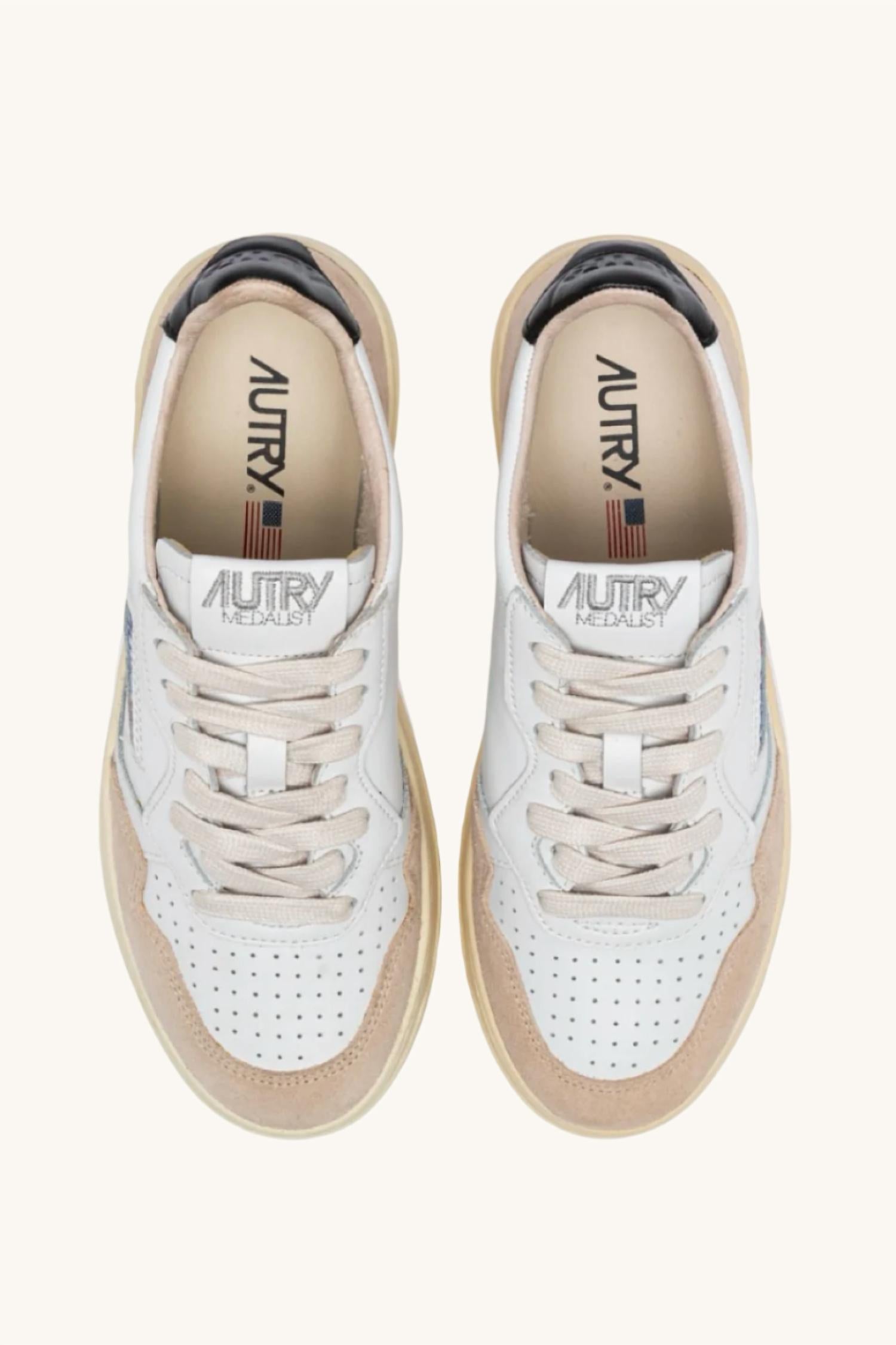 Elevate your streetwear style with AUTRY's Women's Medalist Low Sneaker in suede black. Crafted with a luxurious leather and suede upper, these sneakers boast a padded ankle collar and a perforated toe for added breathability. The design features flat cotton laces, a label sewn on the tongue, and a comfortable 2 cm leather insole, making it perfect for back-to-school occasions. With a rubber sole elevation ranging from 2.5 to 3.5 cm, these sneakers blend functionality and fashion effortlessly. Lined with leather and cotton terry for all-day comfort.