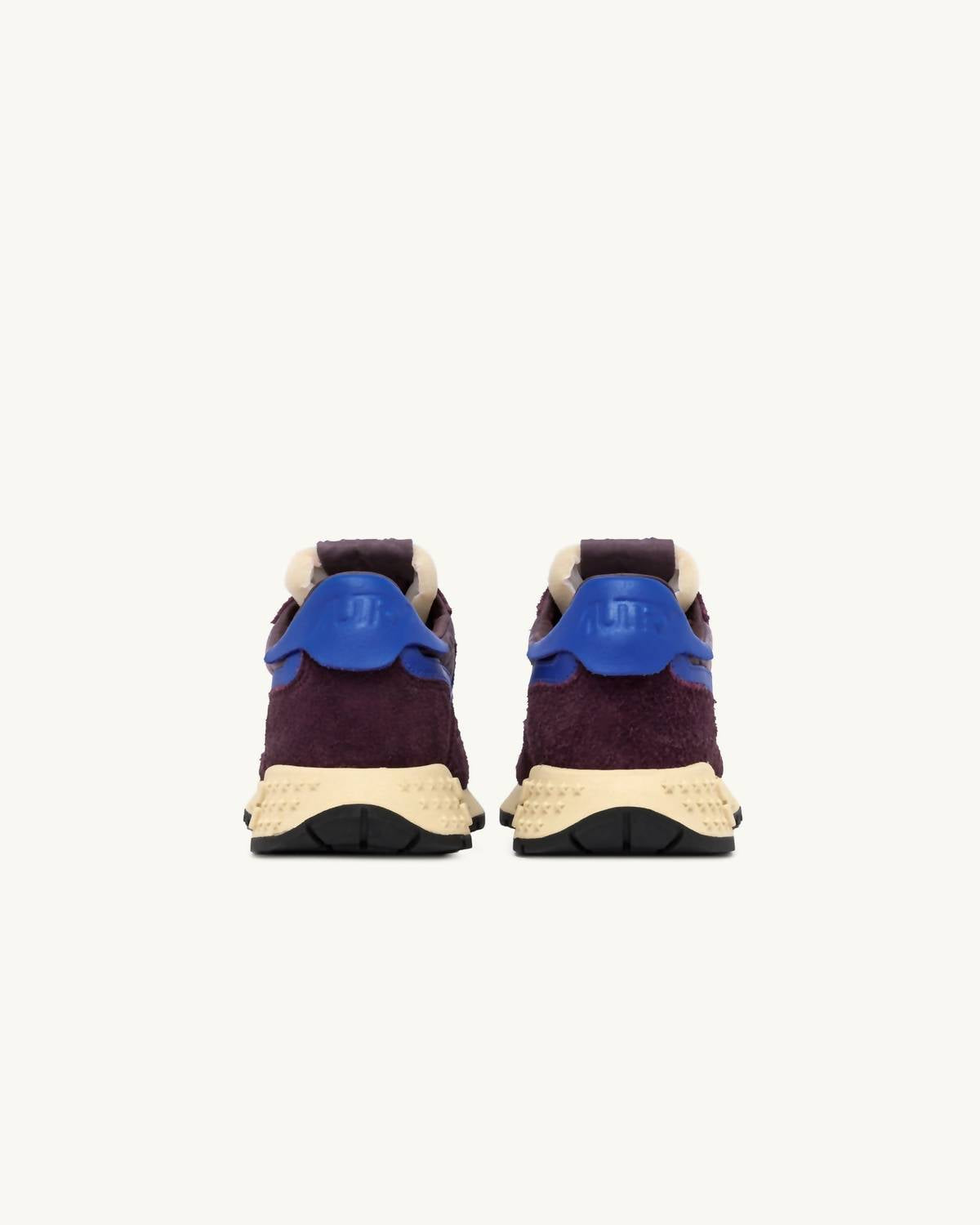 Discover the Women's Reelwind Sneakers by AUTRY, a perfect blend of style and performance for the dynamic modern woman. Crafted from a mix of burgundy suede and nylon with blue leather side panels, these sneakers feature a sleek silhouette tailored for maximum freedom of movement. The medium-width round toe design ensures comfort while the platform heel, measuring 2.5-3.5 cm, adds a subtle lift. Ideal for an athleisure look during fall or around the festive Christmas season, these sneakers are an ideal fitness companion.