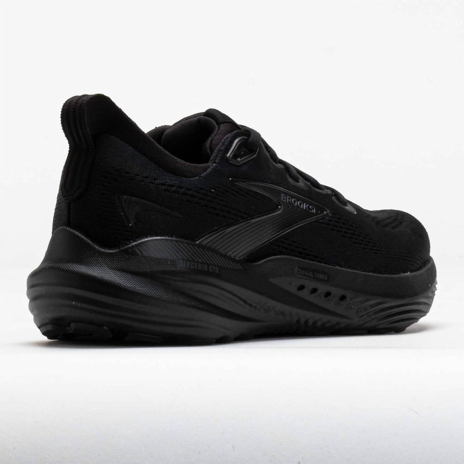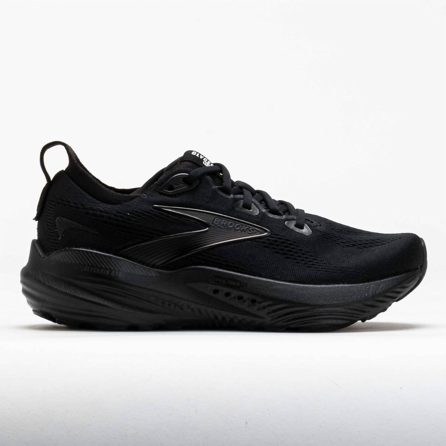 Experience ultimate comfort and support with the Women's Glycerin GTS 22 Running Shoes by BROOKS, expertly crafted for a cushioned ride in Black Grey White. Made from recycled materials, these sneakers feature the innovative GuideRails(TM) support system for stable transitions, perfect for road running and fitness workouts. Designed for athleisure styling in the spring season, these shoes ensure plush landings with their tuned nitrogen midsole. Ideal for Thanksgiving runs and any workout occasion, these sneakers are your go-to choice for smooth and stable transitions.