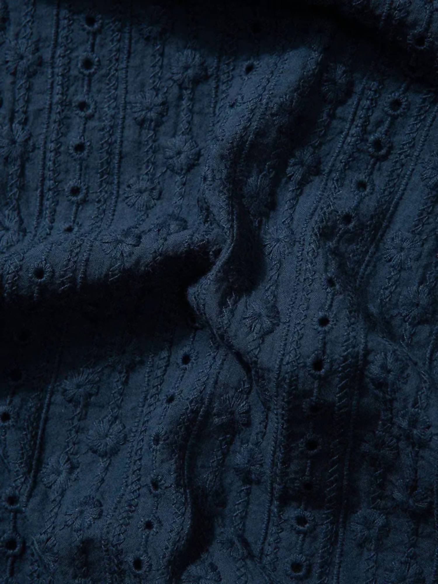 Discover the Freedom Short Sleeve Shirt by Edmmond Studios, crafted for style and comfort in a textured navy finish. This men's tee features short sleeves and a classic collar with delicate embroidery, made from 100% cotton. Originating from Portugal, it includes a convenient front button closure. It's perfect for a modern streetwear look, ideal for the back-to-school season.