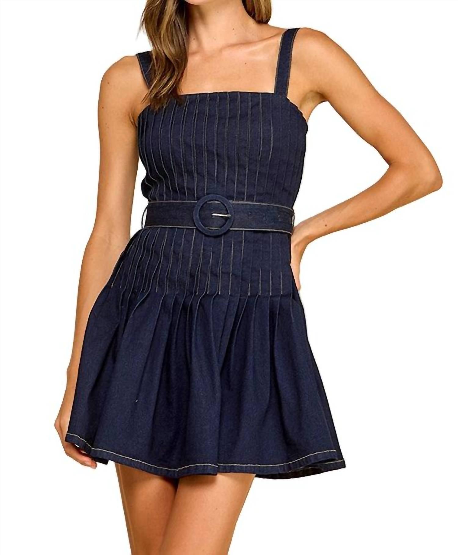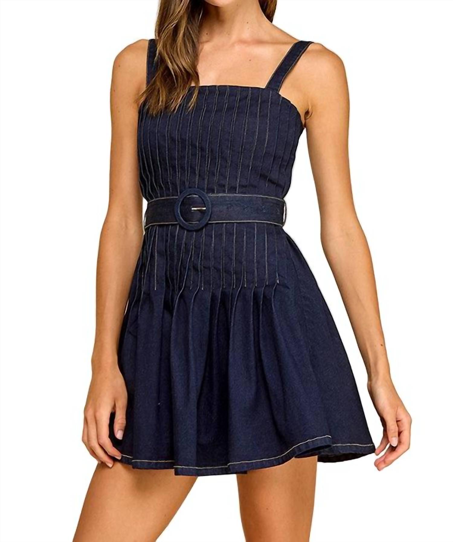 Introducing the Women's Denim Dancing Dress by Baby Pink, a perfect addition to your summer wardrobe. This mini A-line dress features a sleeveless design and a stylish squareneck, crafted from a comfortable cotton blend. Composition: 70% Cotton, 28% Polyester, 2% Spandex. Ideal for a streetwear vibe at dinner parties, it offers a textured look in a cool blue hue.