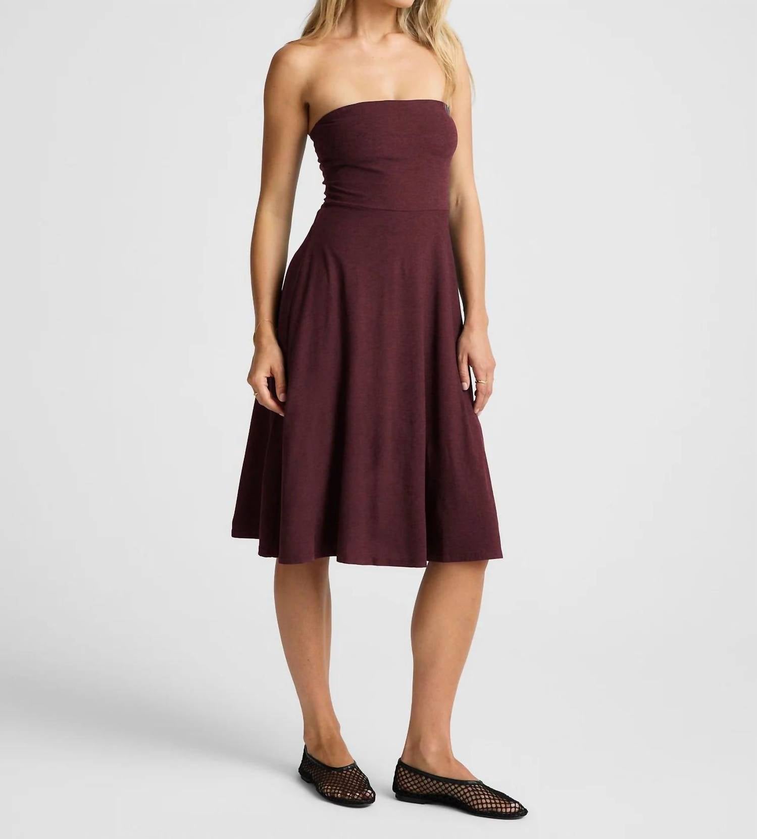 Elevate your wardrobe with the Featherweight Space Dye Strapless Dress by BEYOND YOGA, a chic choice for any occasion in Midnight Burgundy. This dress boasts a strapless neckline and a flattering mid-calf length silhouette, crafted from lightweight polyester that combines 94% Polyester with 6% Spandex for ultimate comfort and stretch. Featuring a stylish spacedye bodice with a built-in bra and a full featherweight skirt, it ensures a wear-tested fit that flatters every shape. Easy to care for, simply hand wash and line dry to keep this minimalist piece ready for your next holiday party or casual outing.