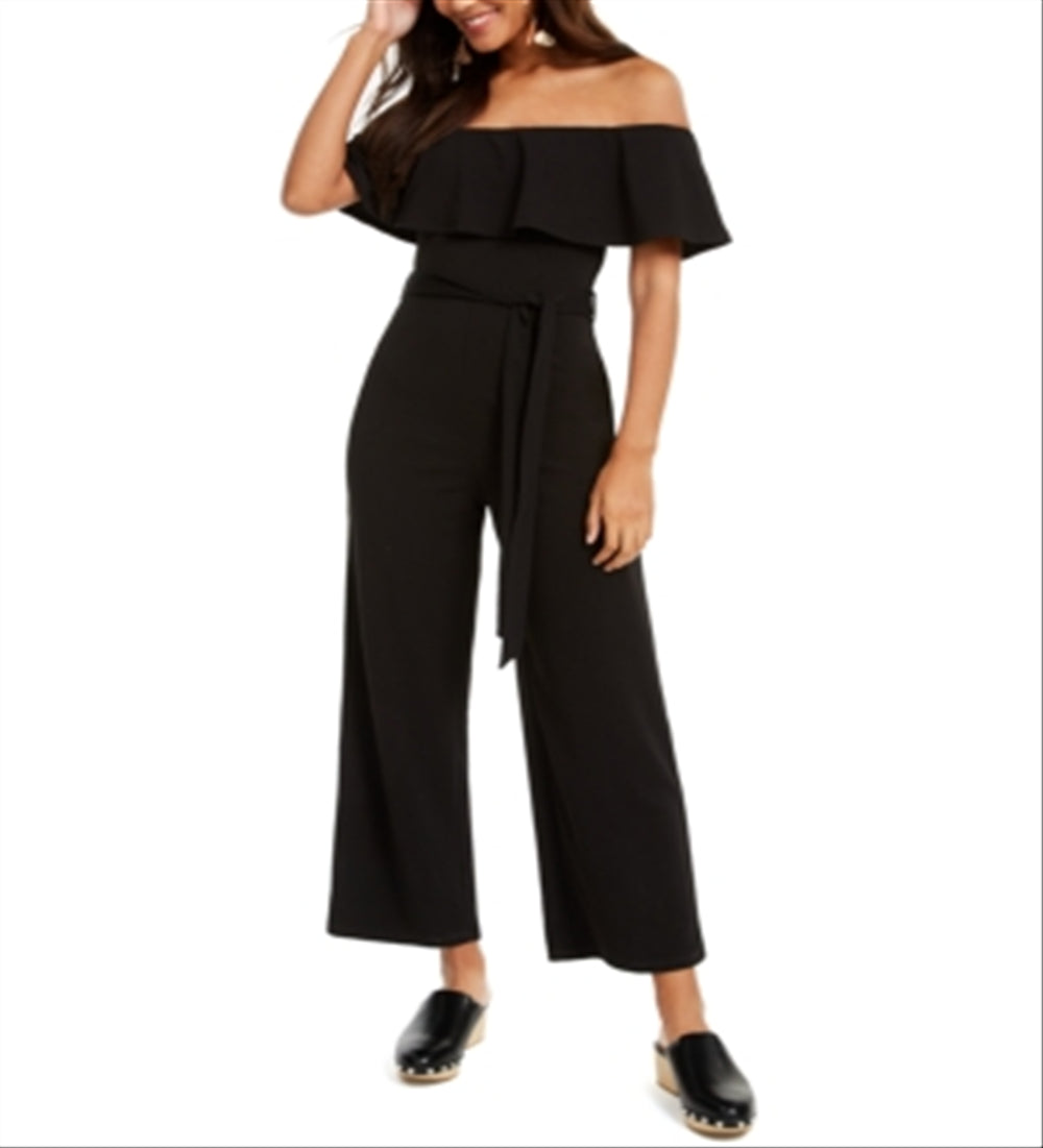 CRAVE FAME Women's Sleeveless Off Shoulder Wide Leg Evening Jumpsuit Black Size M