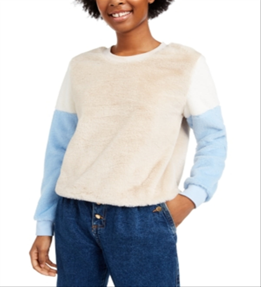 Almost Famous Junior's Colorblocked Faux Fur Pullover Blue Size Small