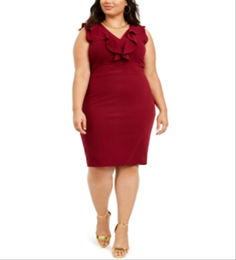 Almost Famous Women's Floral Cap Sleeve V Neck Short Sheath Dress Red Size 2X