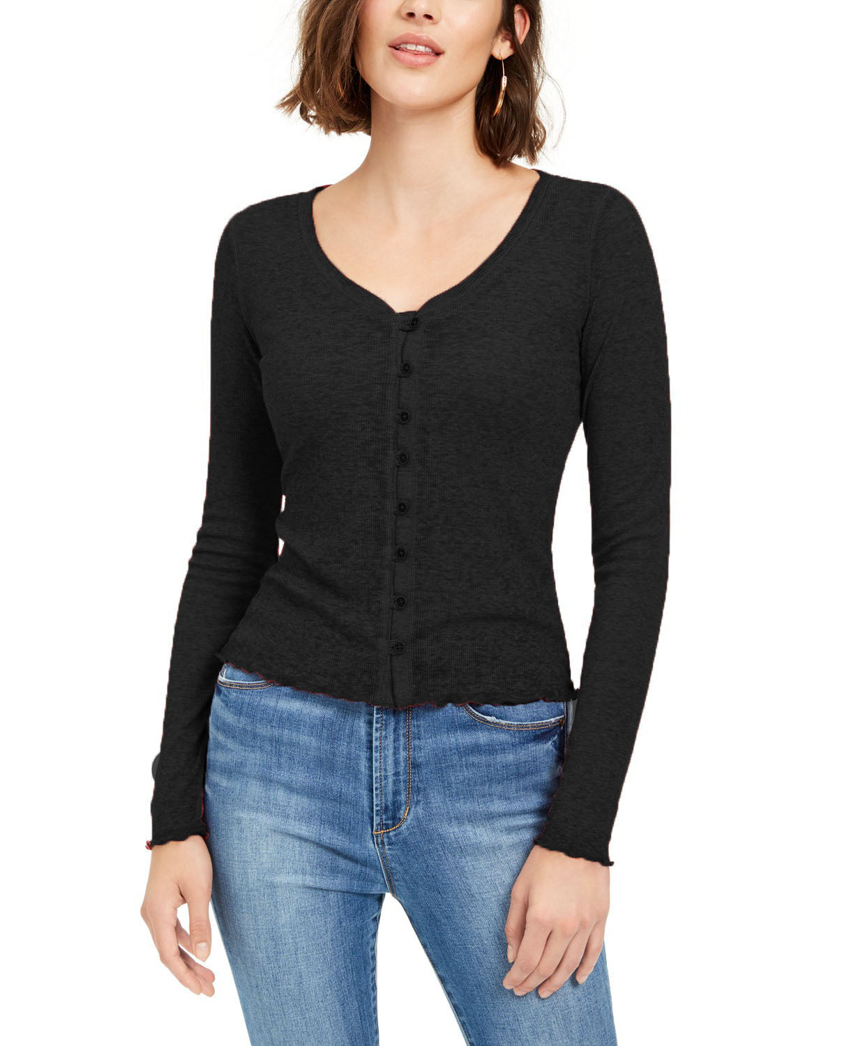 Almost Famous Crave Fame Juniors' V-Neck Button-Front Shirt Black Size Large
