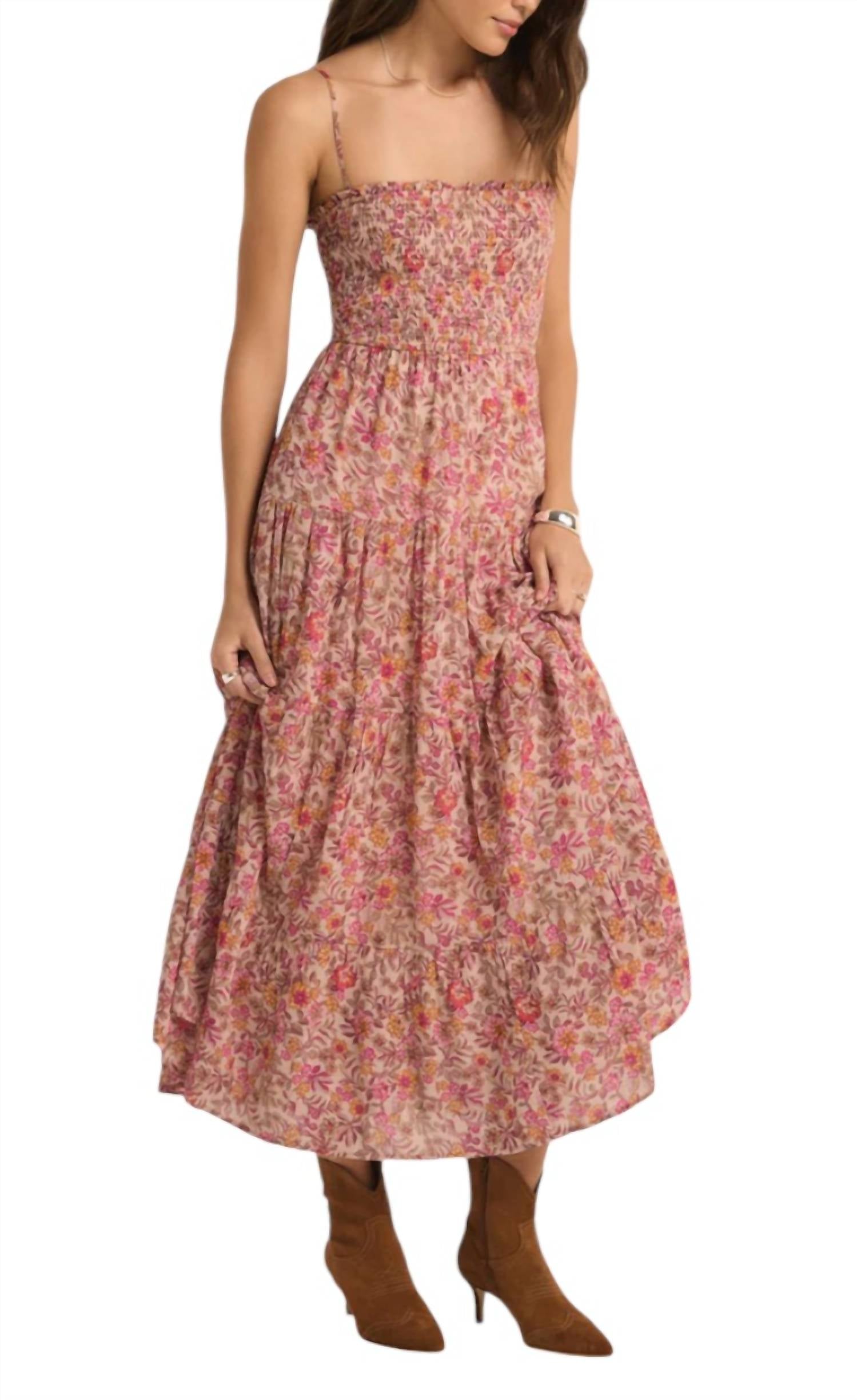 The Balos Lima Floral Midi Dress by Z Supply is a breezy and feminine piece perfect for a day full of grace. Made from a textured voile blend of 52% Cotton and 48% Rayon, this sleeveless dress offers a satiny feel with a regular fit. The maxi-length design features a flattering square neck, adjustable straps, and a flowy tiered skirt for added movement. Care: hand wash cold and hang to dry, or dry clean for optimal maintenance.