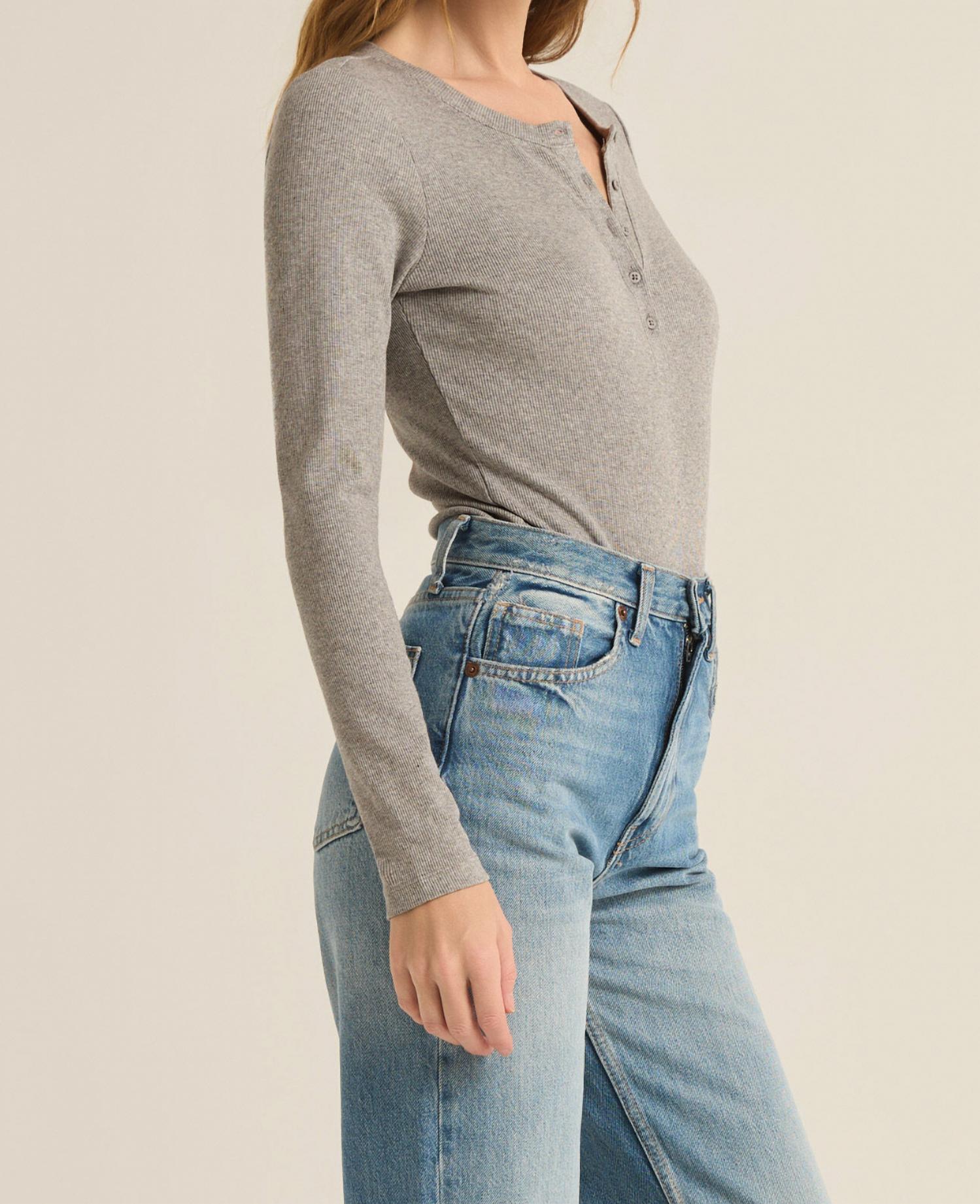 Classic button detail and sleek fit. Long Sleeves. V-Neckline. Henley Top. 50% Cotton, 49% Modal, 1% Spandex. Model is wearing a size small. We find that the Samara Bodysuit runs true to size. Made under fair working conditions in company owned Chinese factory.